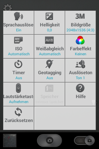 Wie der Name schon sagt, schiesst man ein Foto via Sprachbefehl. Diese lauten Cheese, Smile, LG, Whisky oder Kimchi. Schaut bitte vorher in den Settings nach, ob die Bildgrösse auch wirklich auf 3 Megapixel steht, bei uns war es der Fall, dass diese auf W2M stand. Die sonstigen Einstellmöglichkeiten sind Standard – ISO-Wert, Weissabgleich Farbeffekt, Geotagging, Timer, Helligkeit uns so weiter. Videos kann man zwar auch mit dem Gerät aufnehmen, aber davor ist eigentlich abzuraten. Denn ein Video in einer Auflösung von 800 x 480 ist jetzt nicht wirklich sehenswert.