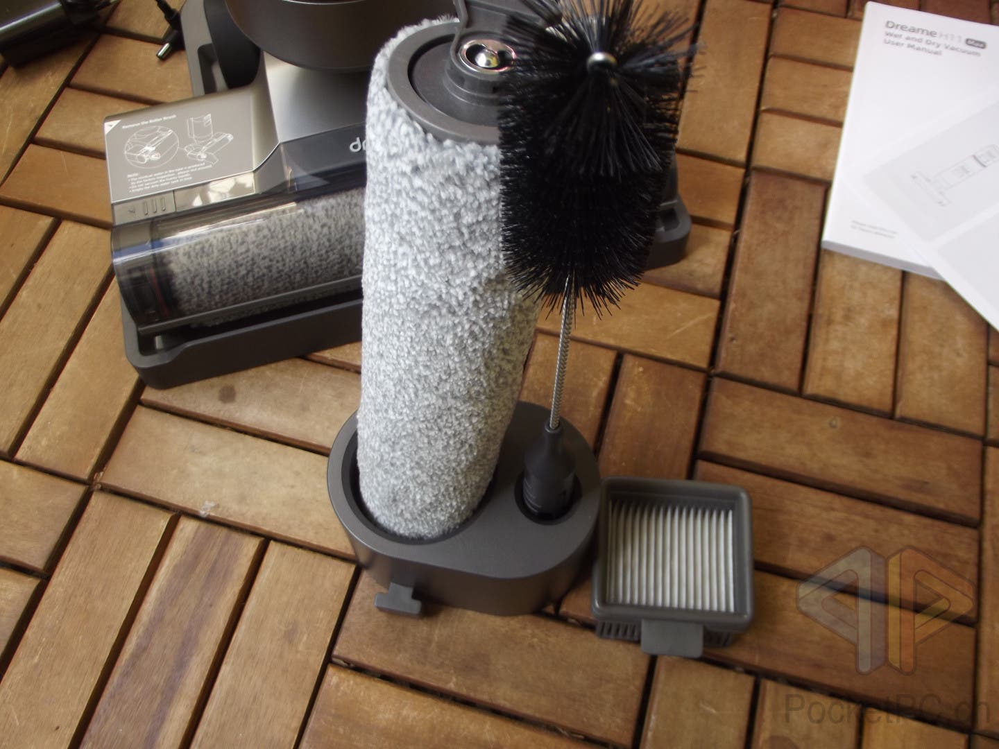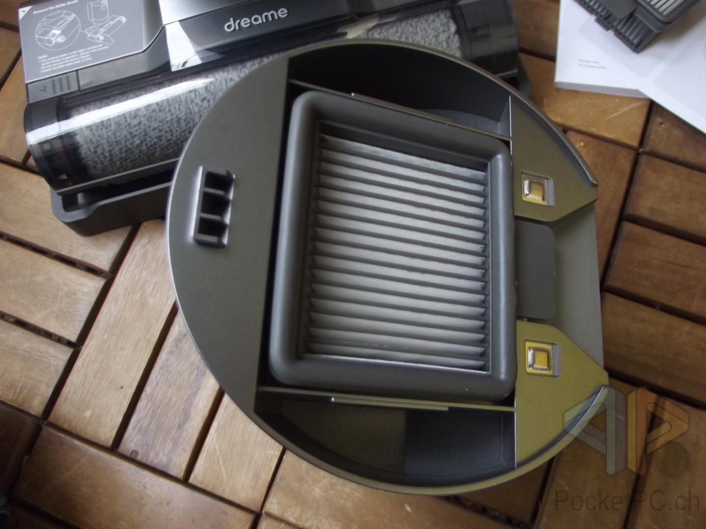 Der Dreame H11 Max besteht aus einem Hauptgerät, in dem ein 900 ml fassender Firschwassertank und ein 500 ml fassender Schmutzwasser- und Staubtank eingesetzt werden. Letzterer verfügt über einen herausnehmbaren Filter.