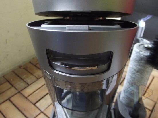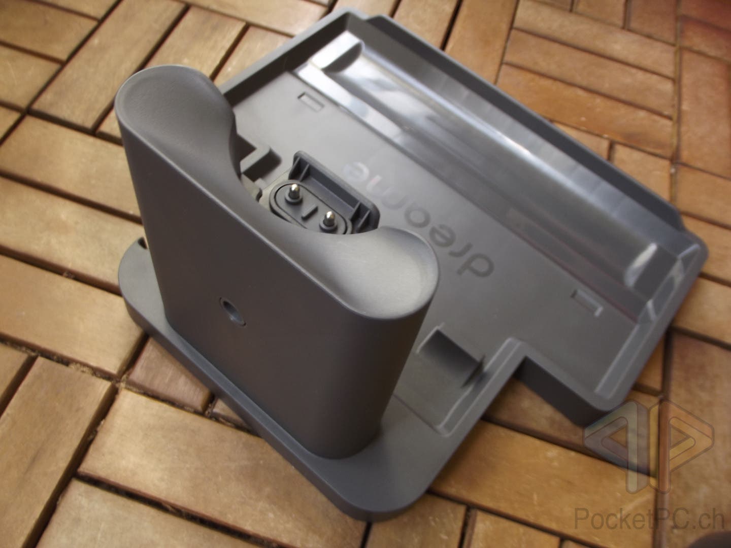 Zum Aufladen wird der Staubsauger in die Ladestation gestellt. Der 3650 mAh starke Akku innerhalb von 5 Stunden aufgeladen. Der Hersteller gibt 36 Minuten Laufzeit für die fest verbaute Batterie an.
