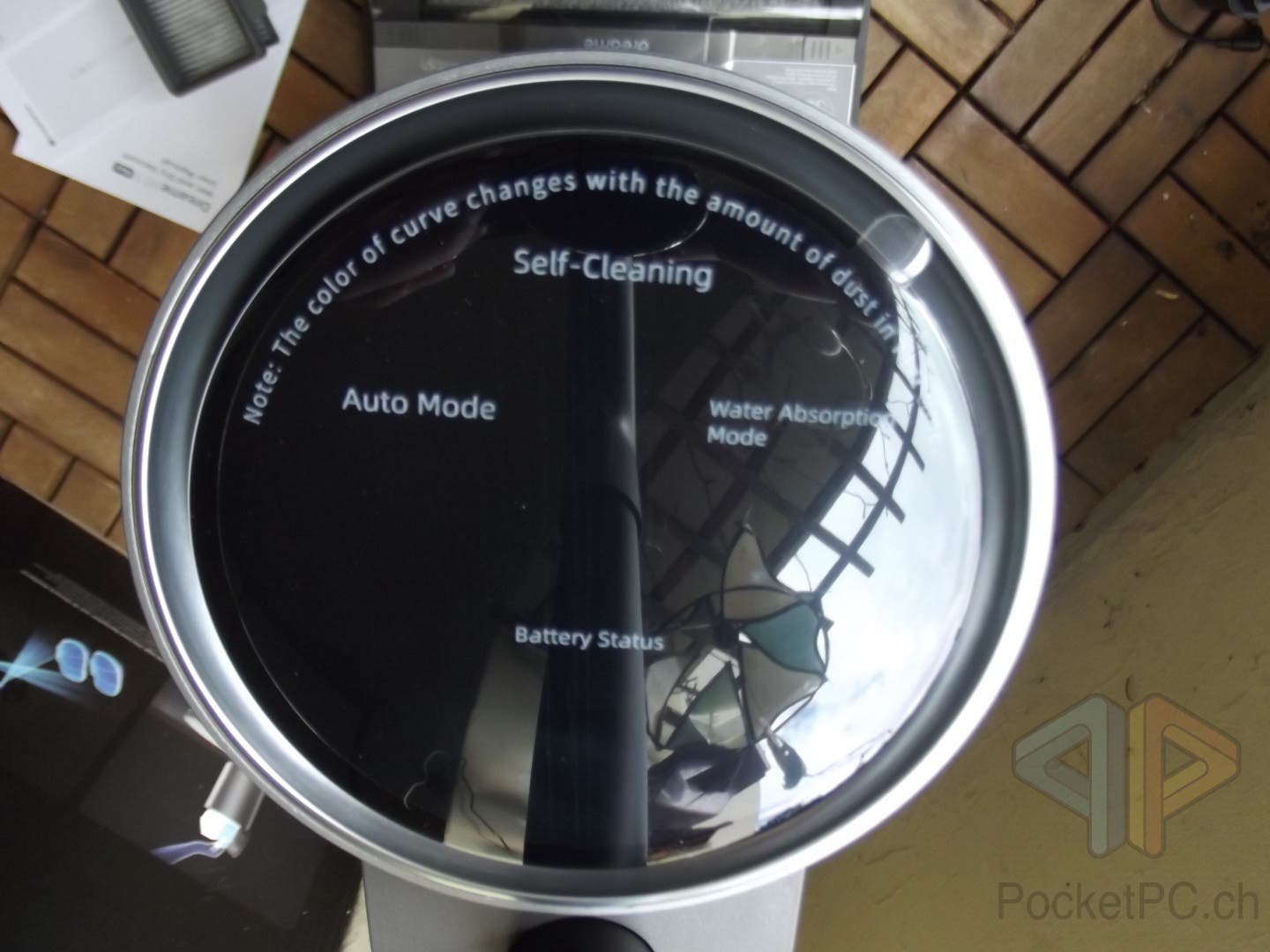 Am selbstleuchtenden LED-Display kann nicht nur zentral und gross der Akkuladezustand abgelesen werden. Es zeigt auch an, wenn die Selbstreinigung im Gang ist, sprich das Putzen der Hauptbürste im Boden der Ladestation.