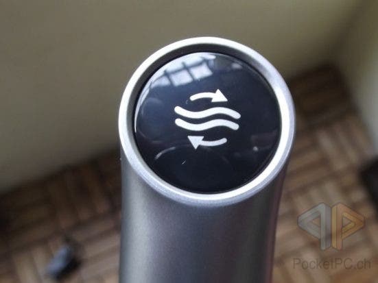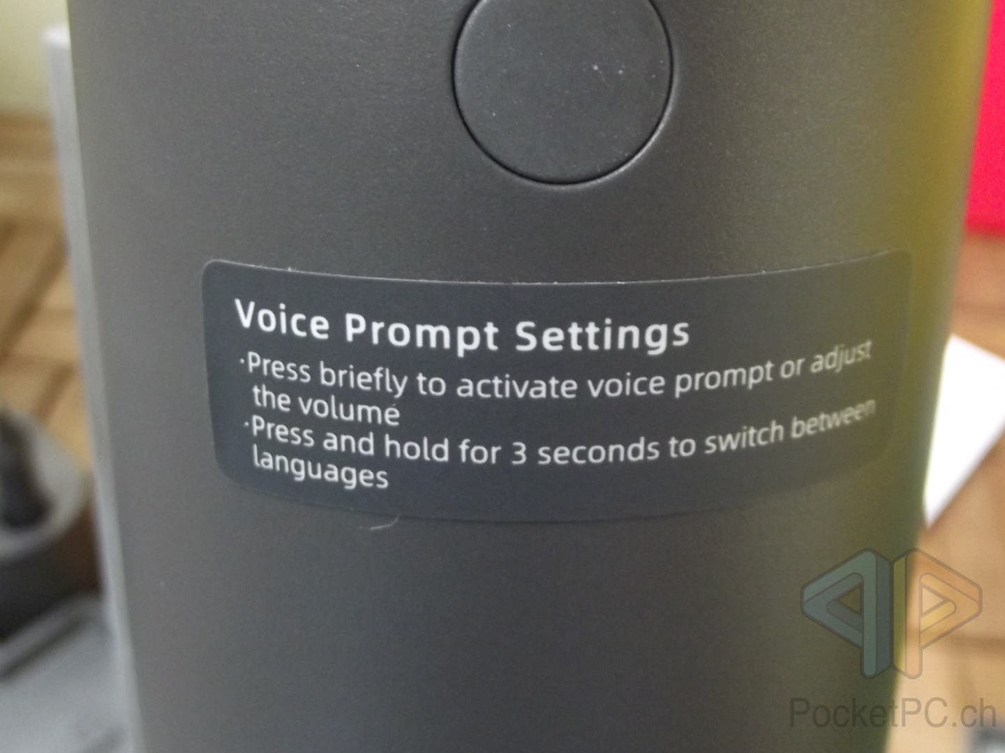 Auf der Rückseite des Dreame 11 Max ist eine Taste zur Steuerung der Sprachausgabe. Klar, denn heutzutage muss ja jedes Gerät mit uns sprechen können. Der Wischsauger kann jedoch nur Englisch und ist nicht smart. Er lässt sich weder per WLAN noch via Bluetooth verbinden. Die Taste kann so auch nur die Lautstärke der Sprachausgabe steuern oder nach dreisekündigem Druck diese deaktivieren.