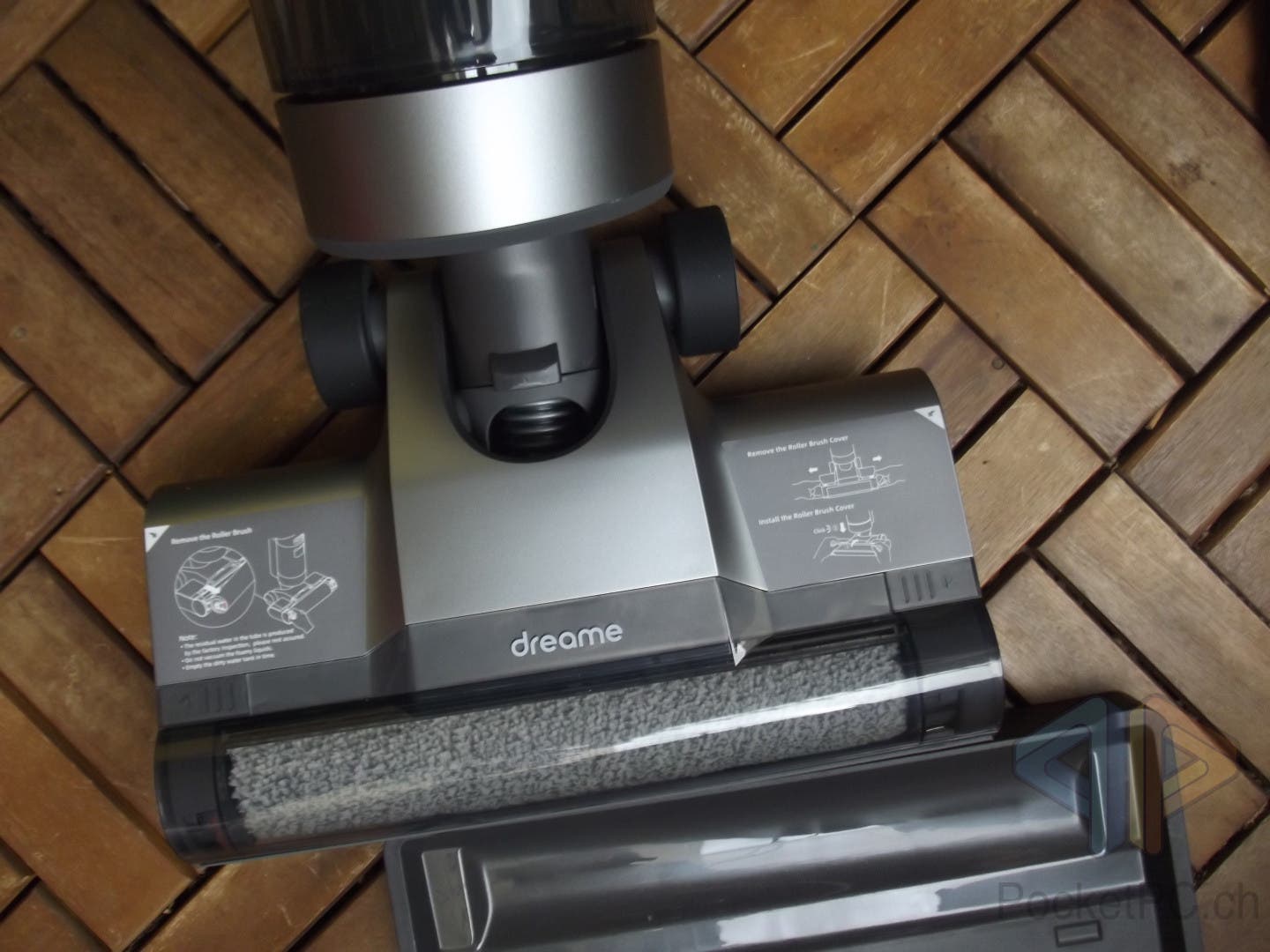 Am unteren Ende des Nass- und Trockensaugers befindet sich das wichtigste Bauteil: Die Walzenbürste. Sie ist standardmässig um 90 Grad angewinkelt. Mit einem kurzen Griff kann sie aber bis zu 140 Grad erweitert werden, so dass man mit dem Dreame 11 Max auch unter dem Sofa putzen kann.