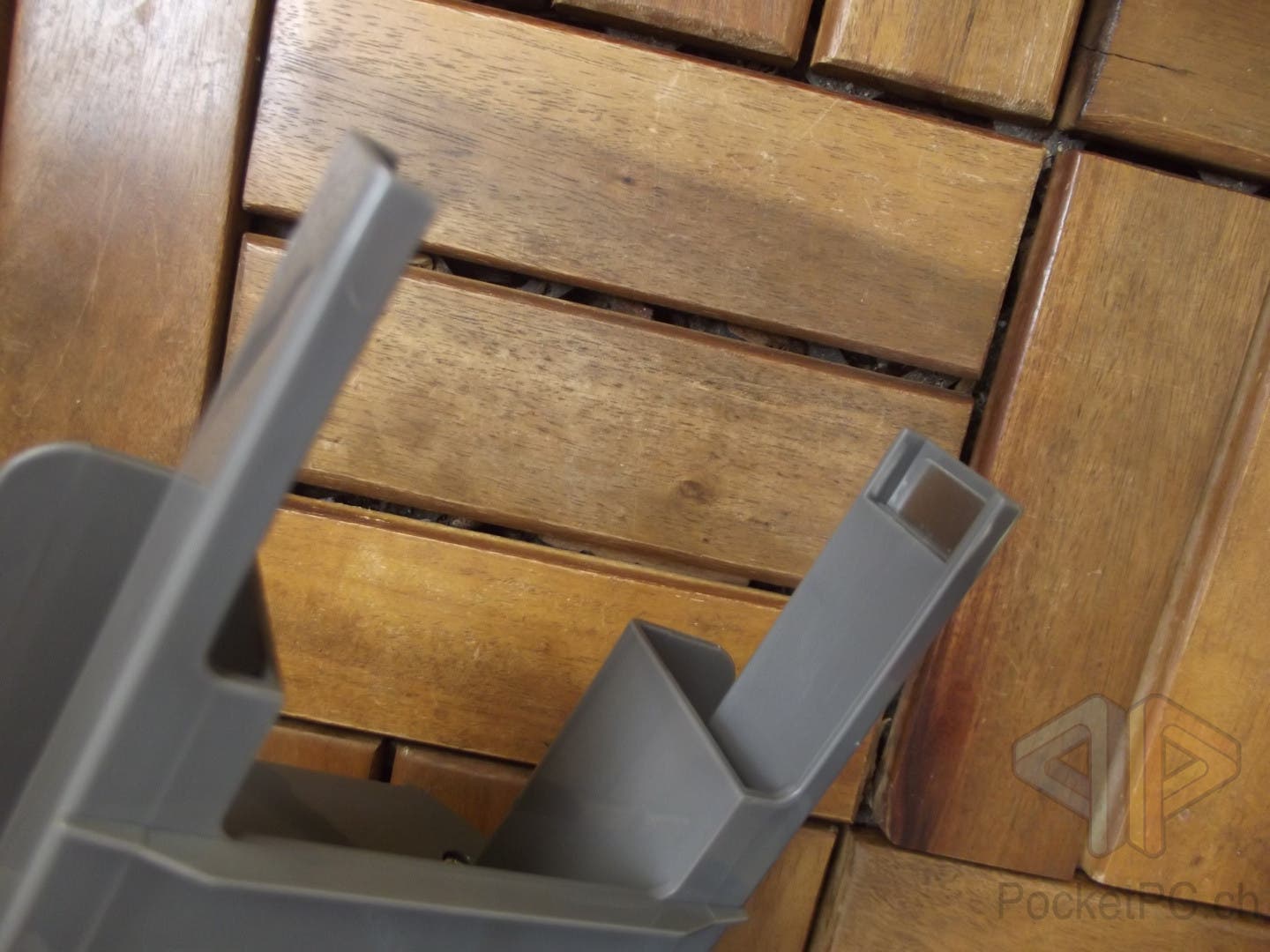 Nach dem Auspacken muss der Dreame 11 Max erst zusammengebaut werden. Das ist jedoch sehr einfach, da nur das Rohr mit dem Griff eingesteckt werden muss. Um den Sauger wieder zu zerlegen, muss auf der Rückseite mit einem Schraubenzieher eine Feder gedrückt werden.