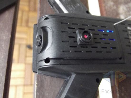 Der Quadrocopter GH-55.fpv ist unter dem Namen Simulus WiFi-FPV-Quadrocopter beim Versandhandel PEARL erhältlich kommt das faltbare fliegende Augenpaar daher. Ja, zwei Kameras. Eine manuell neigbare HD-Front-Kamera mit einer Auflösung von 1280 x 720 Pixel (720p), sowie eine VGA-Kamera an der Gehäuse-Unterseite mit einer Auflösung von 640 x 480 Pixel (480p) können per WLAN direkt Bilder und Aufnahmen an das Smartphone übertragen.
