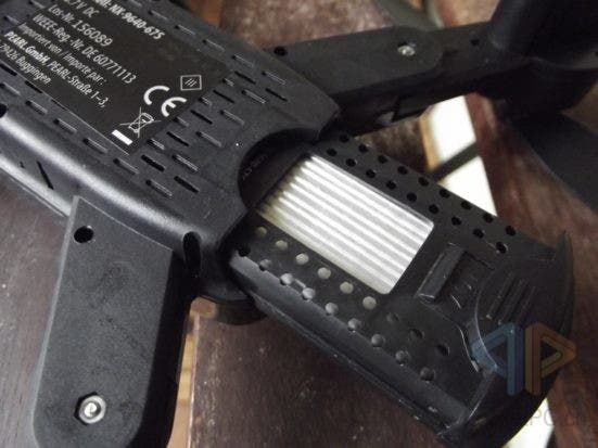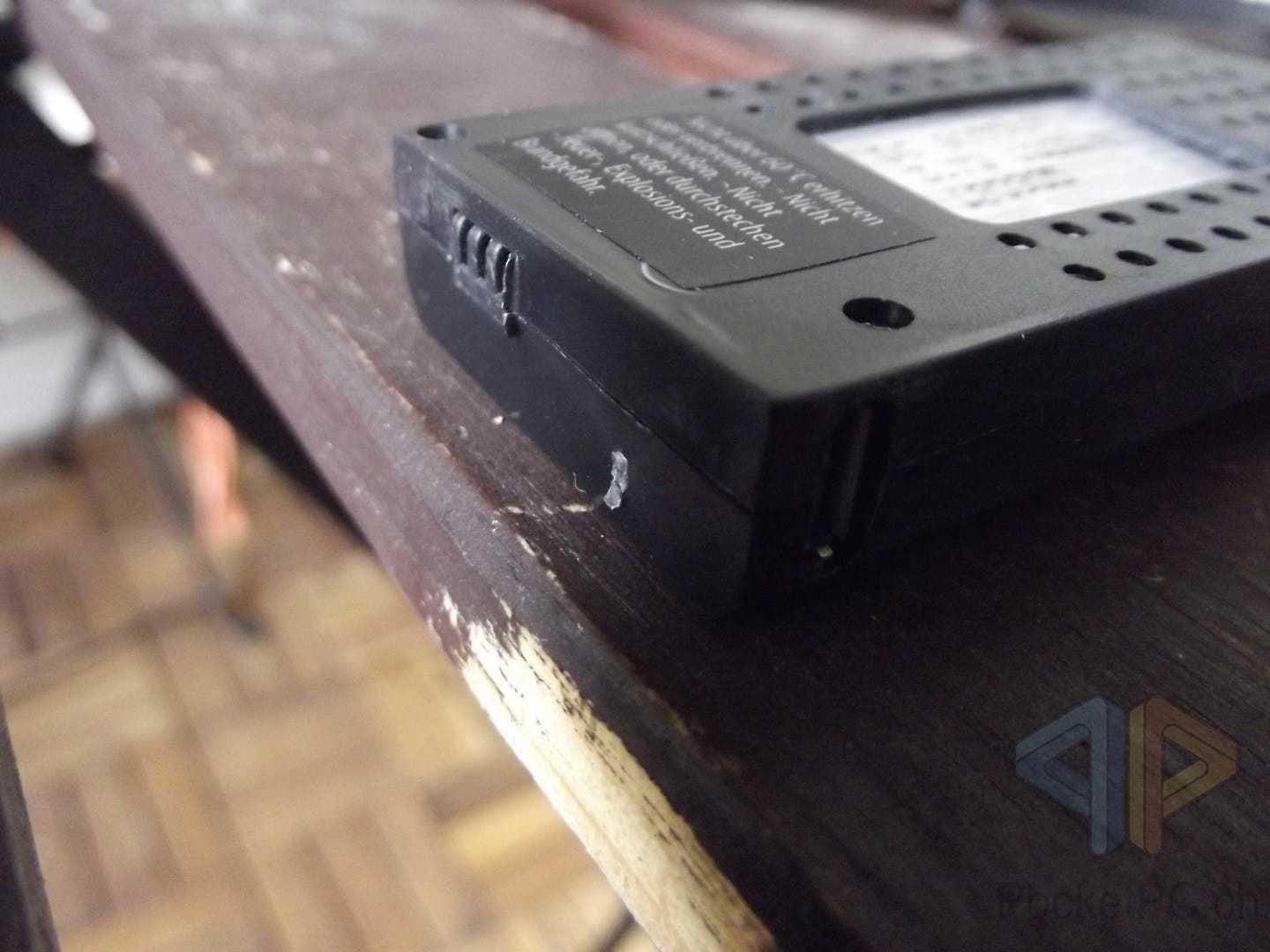 Der mitgelieferte Akku hält übrigens gut zehn bis 15 Minuten Flugzeit durch, lädt jedoch in ca. 90 bis 100 Minuten per microUSB wieder auf, so dass wir dringend empfehlen, mehr als einen Akku zu kaufen. Gut, dass die Drohne selbst landet, wenn der Akkustrom zu gering wird.