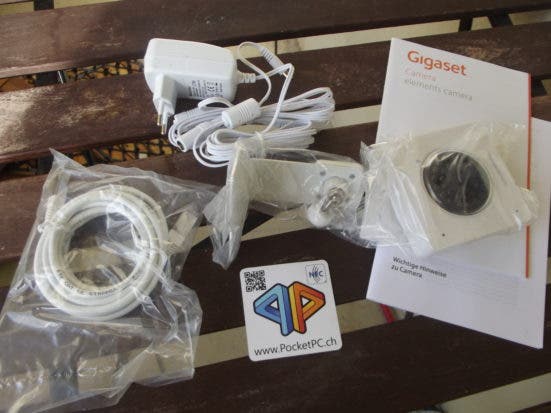 camera ist, wie der Name ebenfalls schon verrät, eine IP-Kamera. Im Lieferumfang der 8.5 x 8.5 x 3 cm kleinen, weissen Box sind neben den üblichen Dokumenten ein Netzteil mit Verlängerungskabel, eine schwenk- und drehbare Halterung für die Wand- oder Deckenmontage enthalten sowie ein Ethernetkabel. Die Gigaset Kamera verfügt zwar über eine WLAN-Anbindung, wird jedoch zur ersten Einrichtung, ebenfalls per App, per Kabel mit dem heimischen Netz verbunden. Die camera wird als einziges Gigaset elements-Gerät nicht mit der Basisstation per DECT-Funk, sondern per WLAN, die Haifisch-Antenne ist deutlich an der Oberseite des Geräts zu erkennen, oder alternativ per Ethernet-Kabel verbunden. Die Kamera verfügt hinter der an HAL aus Kubricks 2010 A Space Odyssey erinnernden Optik über 30 Infrarot-LED, so dass sie auch bei Dunkelheit Bilder mit 720p-Auflösung liefern kann. Dieser LED-Scheinwerfer ist in der Lage, Räume über gut zwölf Meter Distanz unbemerkt auszuleuchten. Bei Tageslicht sind 15 Meter gut zu überblicken. Die Kamera kann den Bereich in einem horizontalen Winkel von 80 Grad und einem vertikalen Winkel von 45 Grad so überwachen.