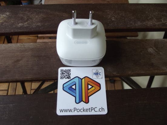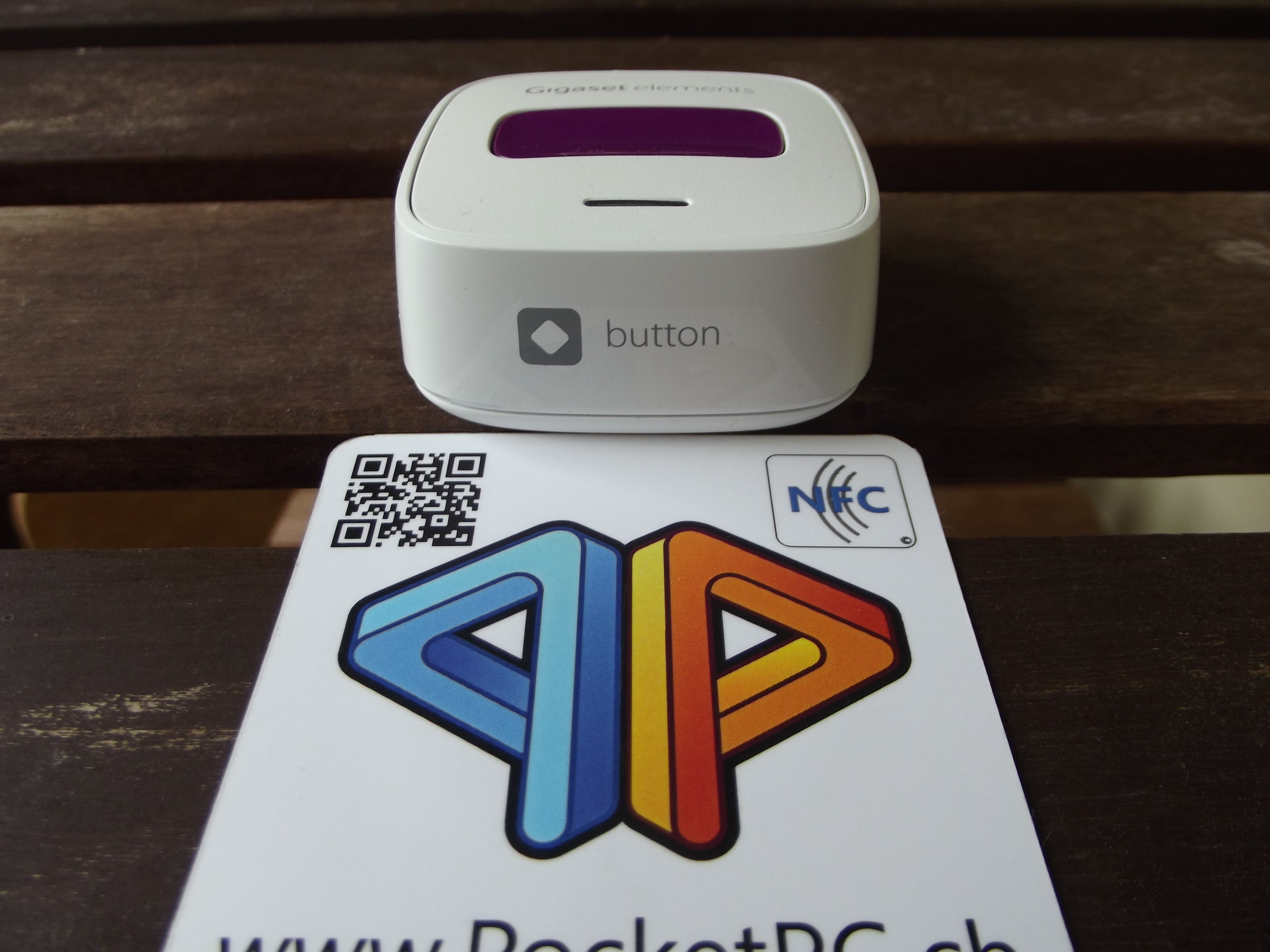 In Verbindung mit button kann plug auch direkt angesteuert werden, denn hierbei handelt es sich um einen DECT-Schalter. Dieser wird mit einer handelsüblichen 3 V-Fotobatterie betrieben und ist im Gigaset elements-üblichen Design weiss und mit abgerundeten Ecken gehalten. Mittig ist eine konfigurierbare Taste zu finden, darunter wiederum eine Status-LED und rechtsseitig ein Taster für den Pairing-Modus. button ist 5 x 5 x 3 cm gross.