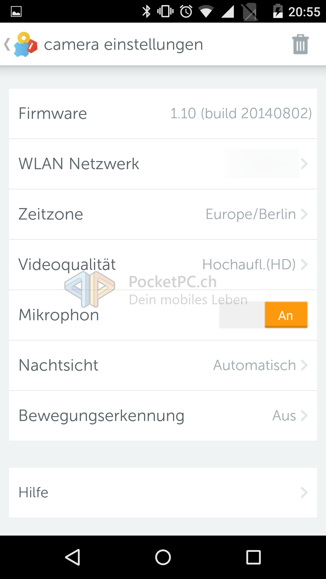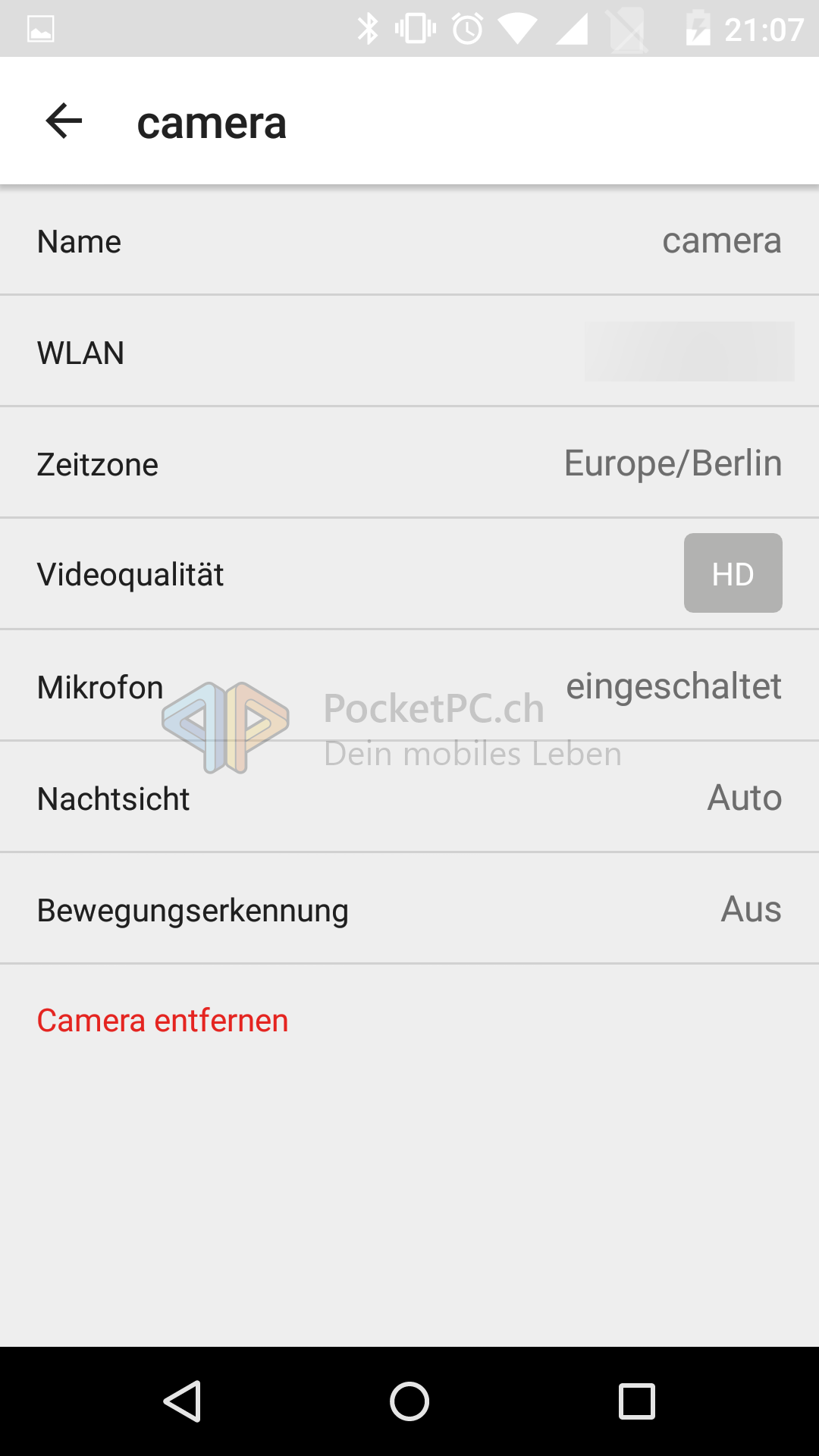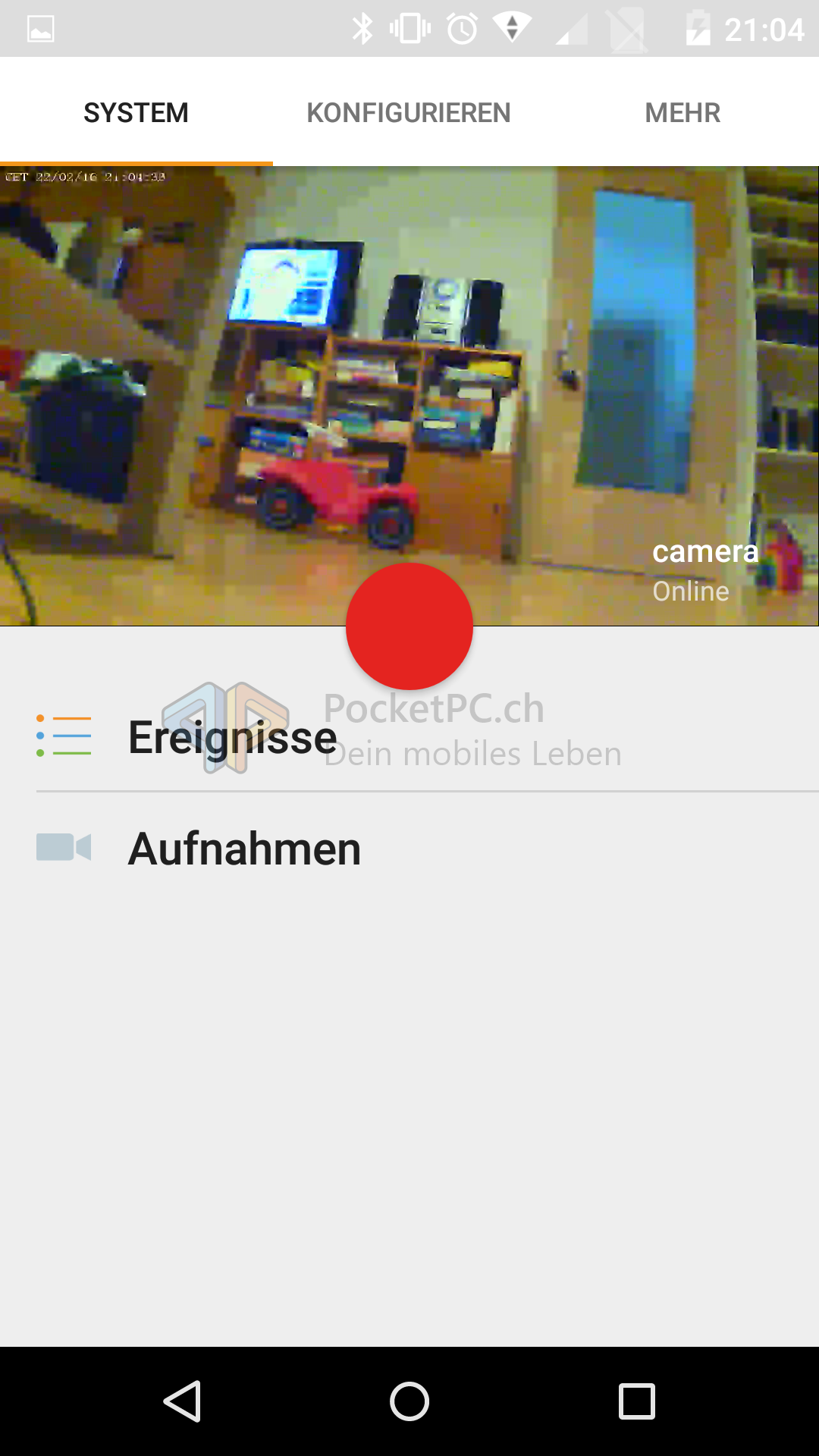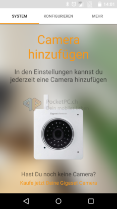 Darüber hinaus verfügt sie über einen eigenen Bewegungs- und Helligkeitssensor sowie ein eingebautes Mikrofon, allesamt als kleine kreisrunde Öffnungen an der Vorderseite der Kamera zu sehen. camera hat ebenfalls eine eigene App und kann auch separat, ohne weitere Gigaset elements betrieben werden. Auch hier erfolgt die Einrichtung genau wie in der Gigaset elements App: Nach Eingabe des rückseitig auf der Kamera angebrachten Aktivierungscodes wird diese im selben Netz wie das Smartphone gesucht und bestenfalls gefunden. Nun kann das WLAN-Signal konfiguriert werden. Die Apps bieten beide für camera die Option, direkt Aufnahmen von lediglich bis zu 30 Sekunden im Speicher des Smartphones abzulegen, wenn man gerade live das Bild der Kamera verfolgt.