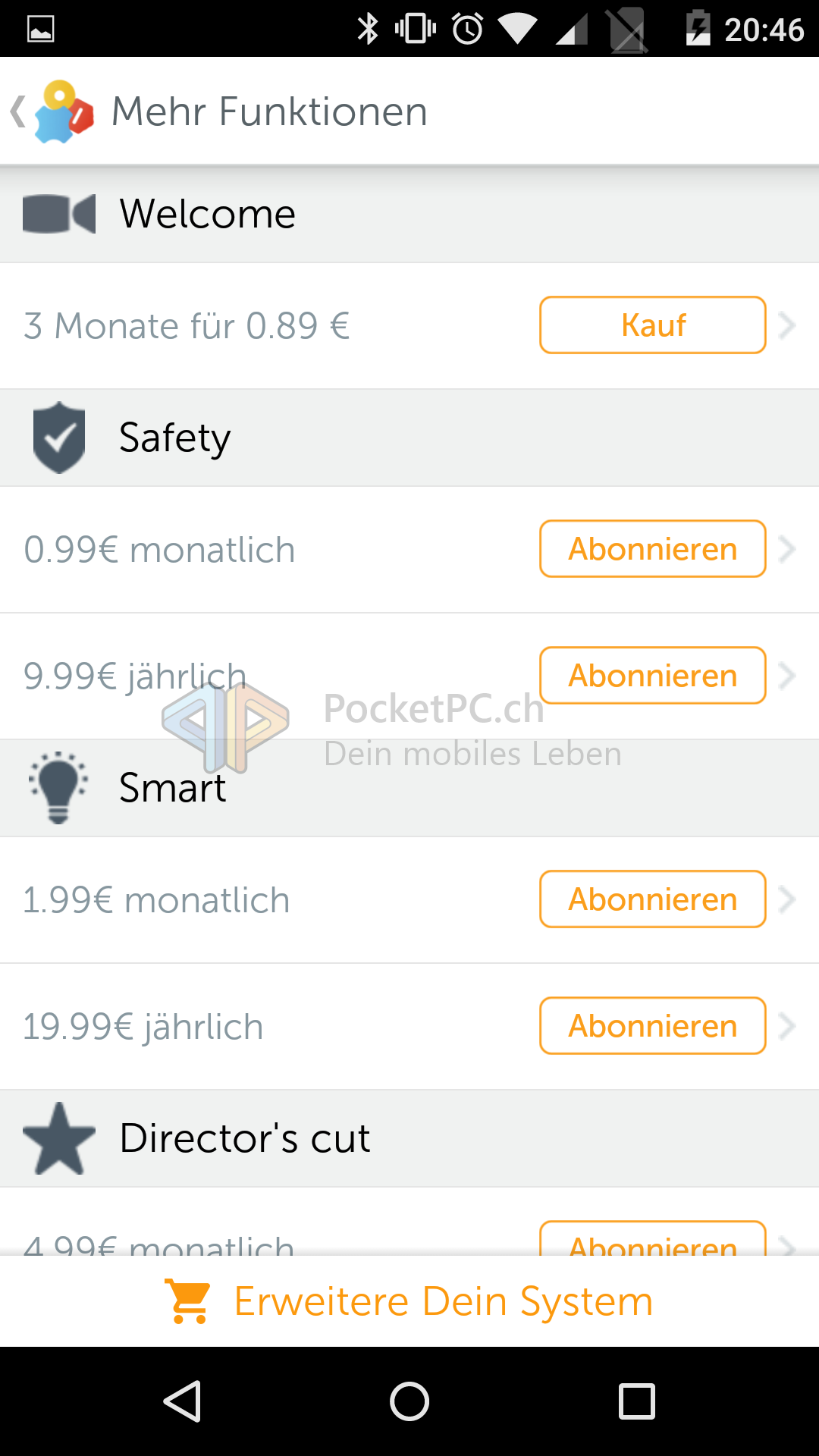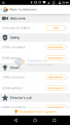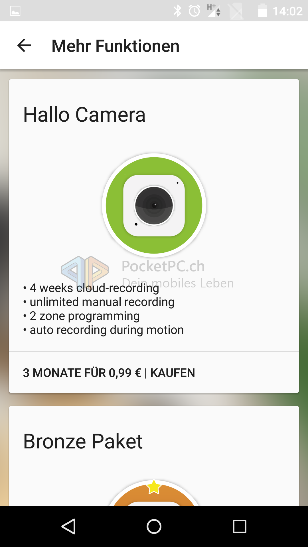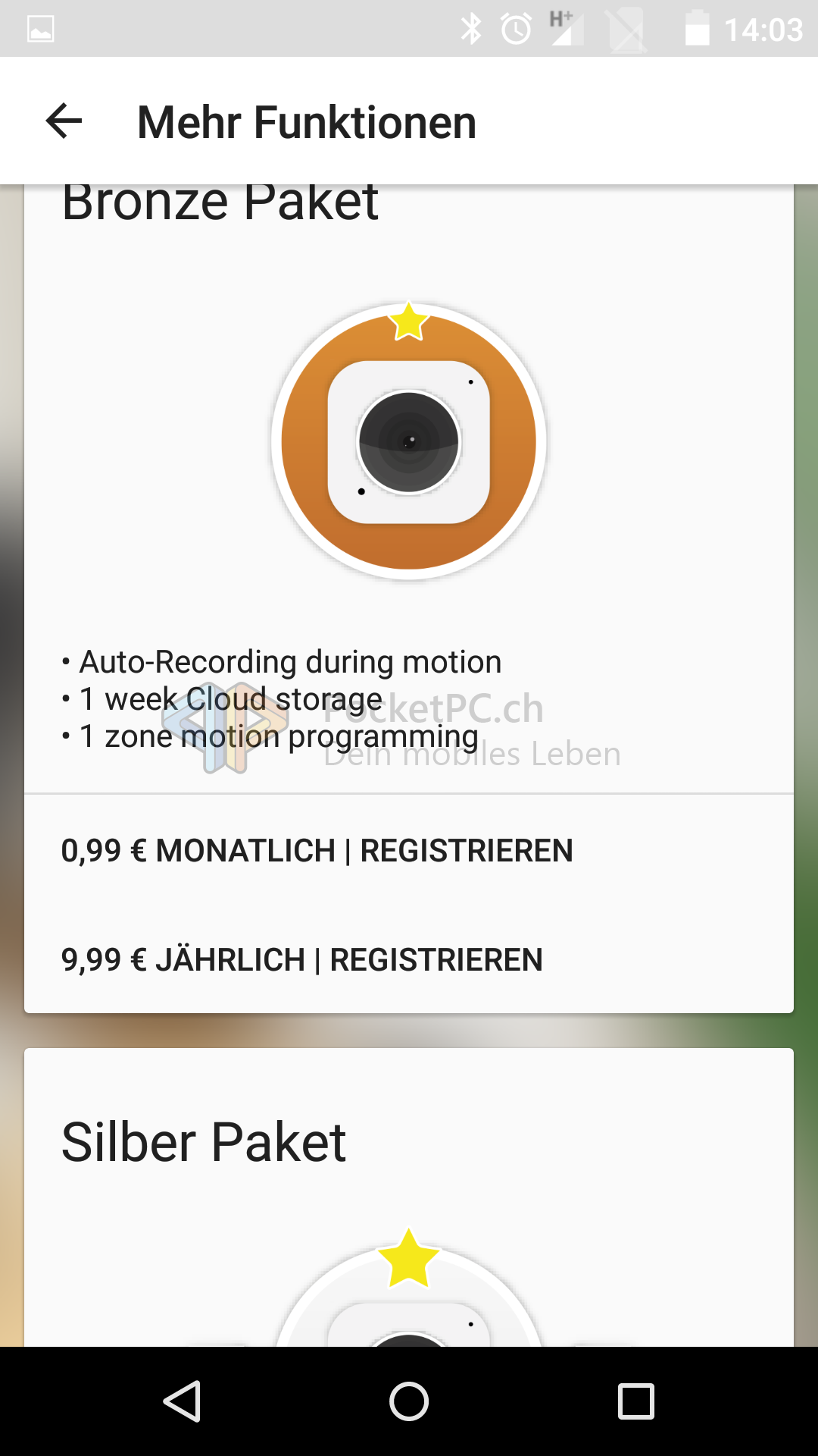 Will man jedoch die Kamera zur Überwachung nutzen, ist das Erstehen von Cloud-Paketen notwendig, die von 0,99 Euro bzw. 1.08 SFr. bis 4,99 Euro bzw. 5.50 SFr. monatlich oder um den Faktor zehn im Jahresabo zu haben sind. Diese Pakete ermöglichen es, automatische Videoaufnahmen beim Erkennen einer Bewegung in der Cloud von Gigaset zu erstellen, die dann entsprechend länger aufbewahrt bzw. um weitere Funktionen wie eine uneingeschränkte manuelle Aufnahmen und zusätzlich konfigurierbare Bereiche, in denen Bewegungen erkannt werden sollen, erweitert werden. Ein Testpaket namens “Hallo Camera” für Gigaset elements bzw. “Welcome Package” für die eigenständige Gigaset Camera-App kostet einmalig 0,99 euro bzw. 1.08 SFr. und erlaubt den Zugriff auf alle Funktionen und Features der Cloud-Kamera einmalig für drei Monate. Mehr zu den um Abo-Möglichkeiten findet ihr im nachfolgenden Datenblatt-Auszug.