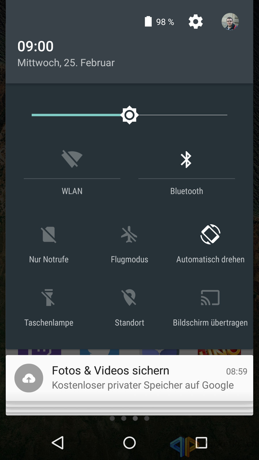 Neben “Material Design” gibt es noch weitere Neuerungen in Android 5.0 (entschuldigt sollte ich welche vergessen). Der Sperrbildschirm zeigt nun dieselben Notifications an wie das Notification Center. Dieselben Interaktionen sind damit möglich. Das Notification Center hat sich in Sachen Design auch ein wenig verändert. Es gibt nicht mehr zwei Seiten, sondern nur noch eine. Wenn man das Notification Center herunterzieht, werden die Benachrichtigungen angezeigt. Wenn man es dann erneut herunterzieht, erscheinen die Quicksettings. Also die Möglichkeit, Wlan,Bluetooth etc. an- bzw. auszuschalten. Weiterhin ist es leider nicht möglich, die Quicksettings anzupassen.