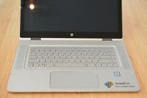 Das Spectre x360 bietet eine vollwertige, auffällig flache Tastatur, mit 1.4 mm Erhebung bzw. Druckdistanz. Im Vergleich zur ausgezeichneten Tastatur eines Lenovo X220T-Tablets konnten wir allerdings feststellen, dass wir etwas mehr Fehler produzierten, bei ähnlicher Geschwindigkeit. Die angenehme Hintergrundbeleuchtung kann über eine immer beleuchtete Funktionstaste ein- bzw. ausgeschaltet werden. Angenehm hervorzuheben ist auch, dass die F-Tasten erst über die FN-Taste aktiviert werden, und so die Funktionstasten (Lautstärke, Helligkeit , Flugmodus etc.) direkt ohne FN-Taste verwendet werden können, was uns ein wenig an die Funktionsleiste der Macbooks von Apple erinnert.