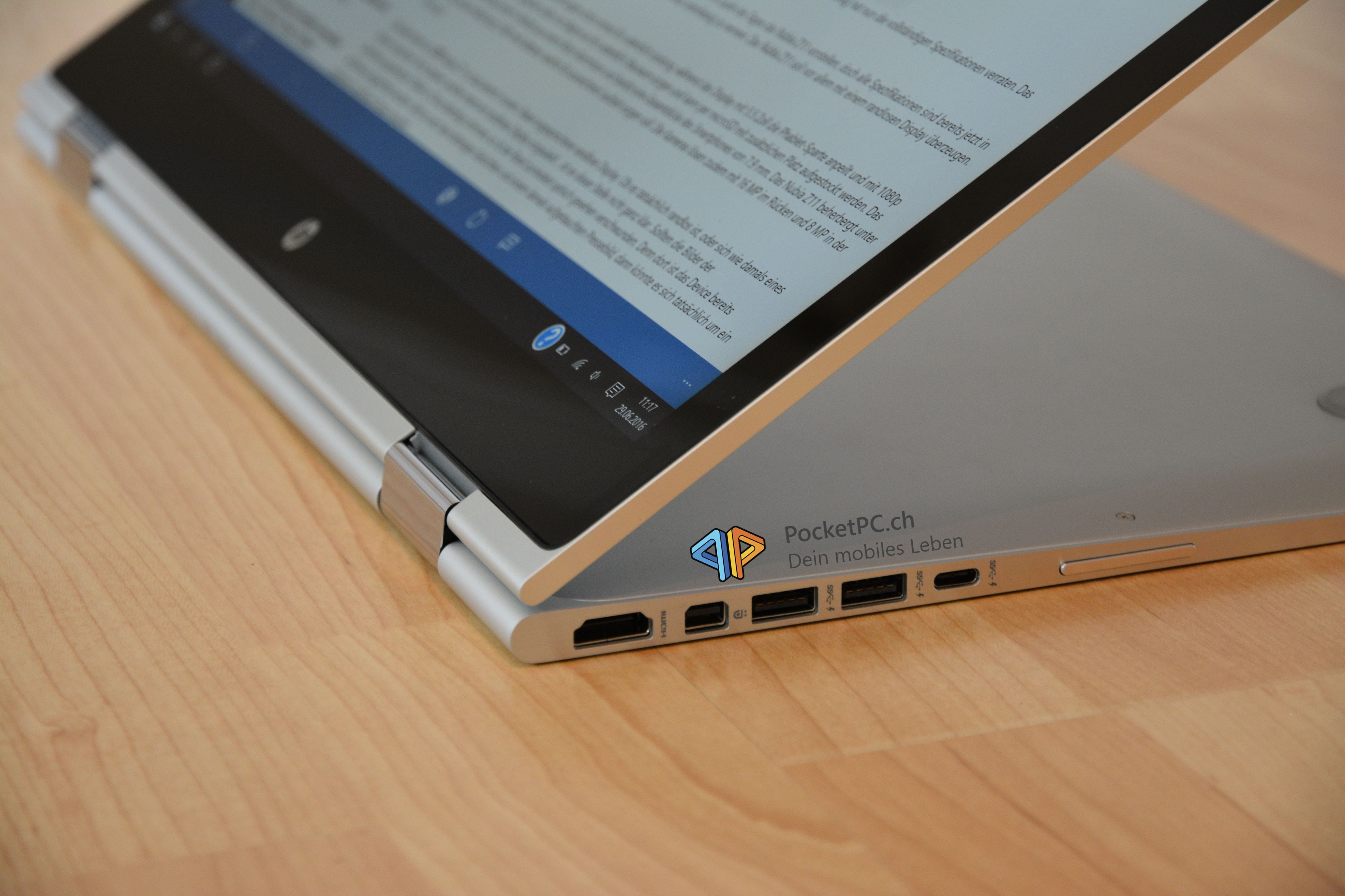 Das Scharnier, welches erlaubt, dass das Display stufenlos um bis zu 360 Grad umgeklappt werden kann, macht einen sehr hochwertigen Eindruck. Einwände anderer Berichte, dass der Bildschirm nicht stabil ist, wenn man den Touchscreen benutzt, konnten wir nicht nachvollziehen. Bei unserem Testgerät waren wir sogar beeindruckt, wie wenig sich das Display beim Verwenden der Touchbedienung bewegt.