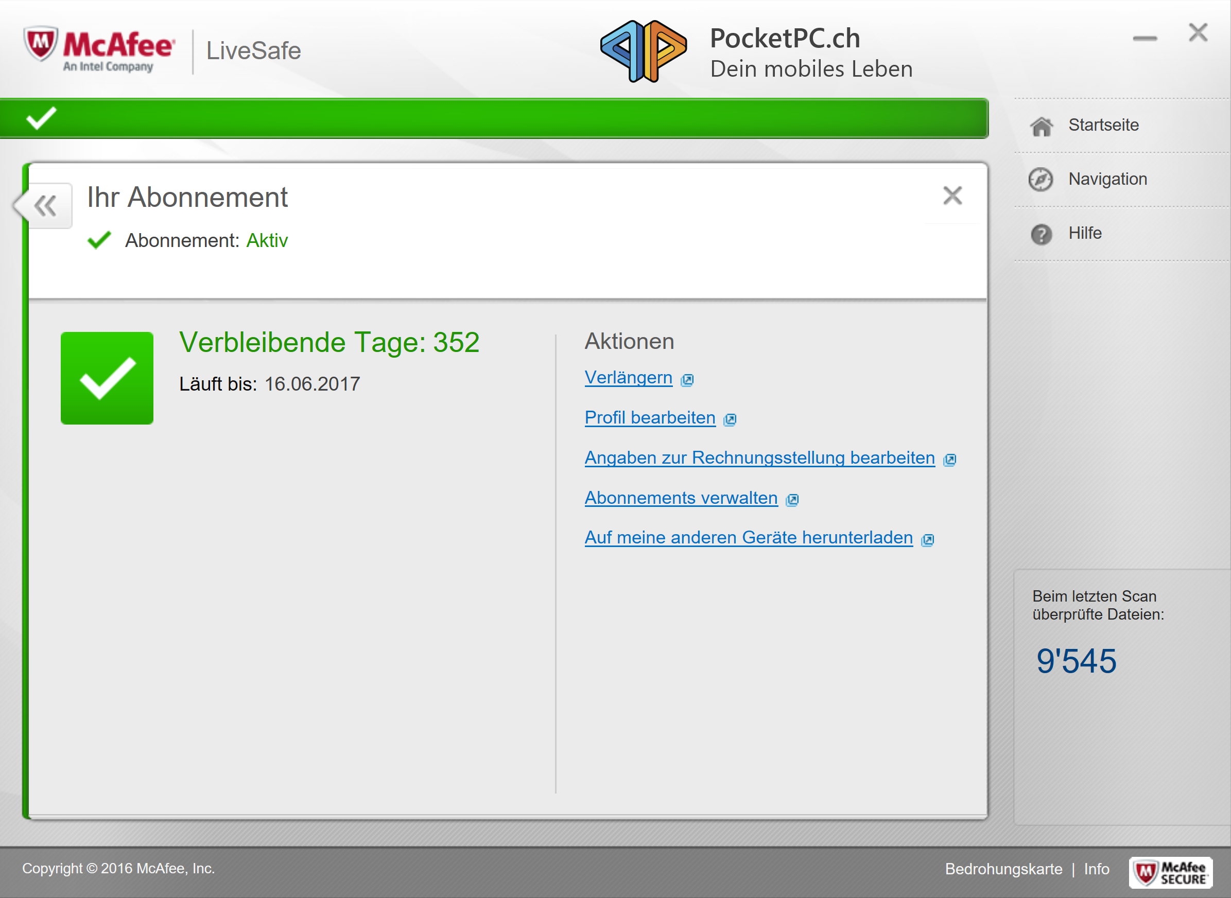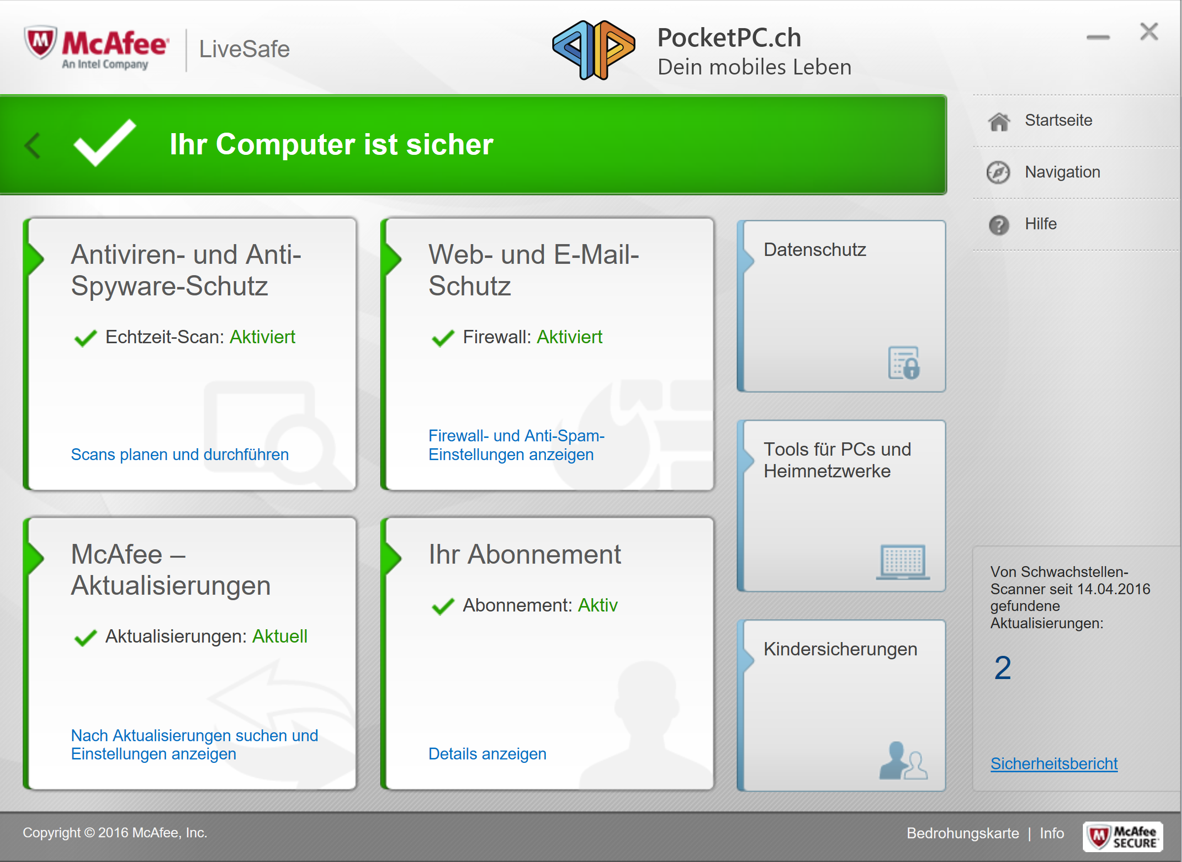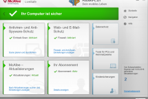 Als Antiviren/Antispy-App wird McAfee LiveSafe (1-Jahres-Abo inkl.) mit installiert. Die Software bremst unserer Erfahrung nach das System allerdings etwas aus, vor allem bei der Installation von grossen Programmen (Visual Studio 2015) war dies doch spürbar. Generell sollte man aber auf eine Antivirensoftware nicht verzichten. Sicherheit geht natürlich in erster Linie vor.