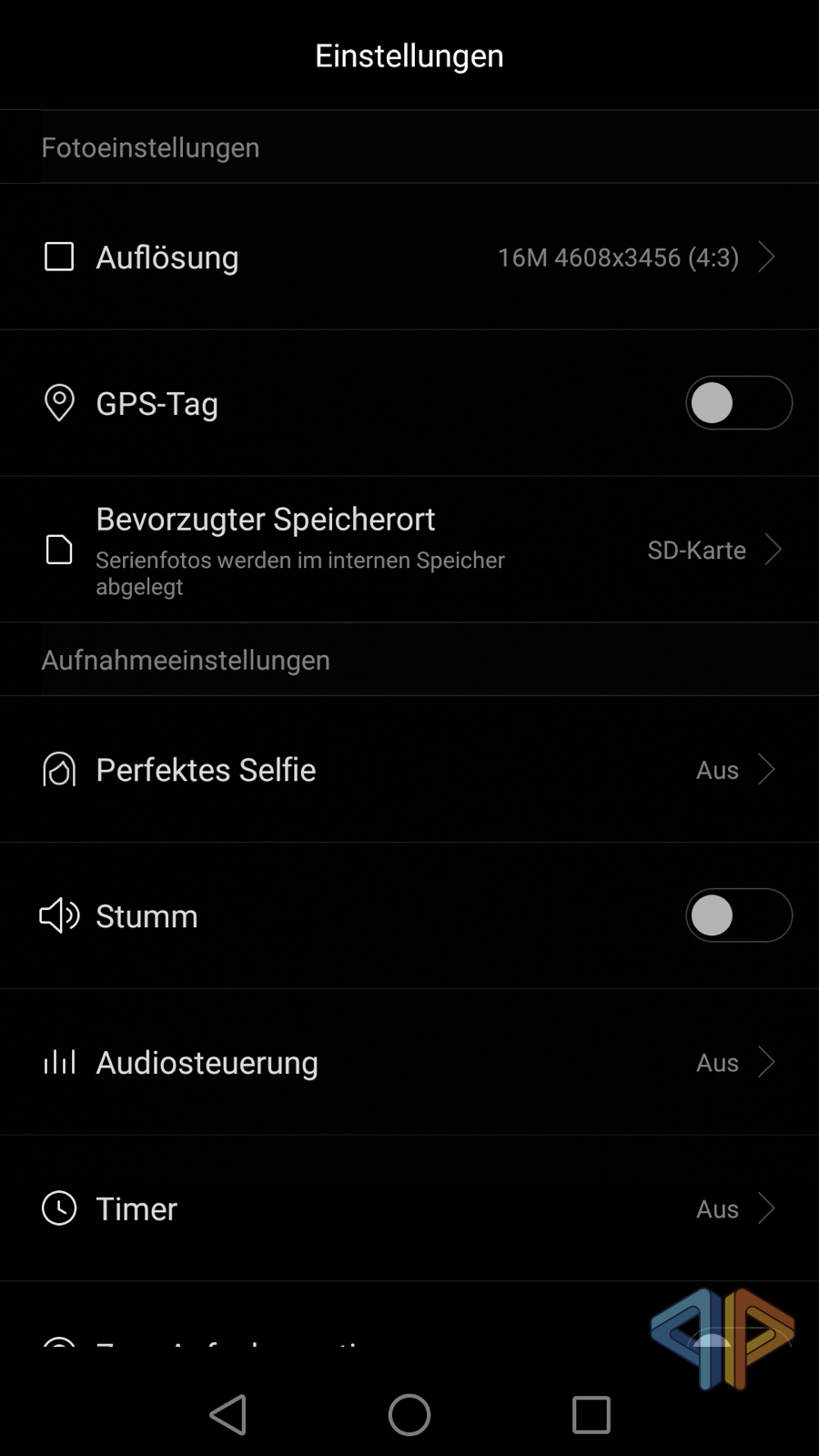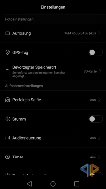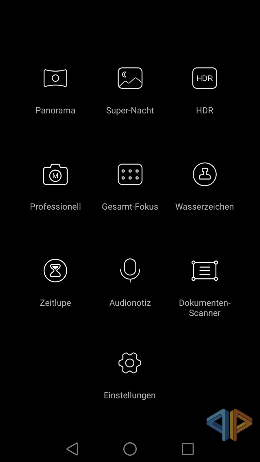 Auch die Kamera Software ähnelt der iOS Kamera App. Jedoch mit viel mehr Funktionen, wie beispielsweise einem manuellen Kamera-Modus. Dieser Modus ist natürlich beim Fotografieren ab und zu hilfreich. Neben einer Panorama-Funktion besitzt die Kamera App auch einen “Super Nacht”- Modus, einen HDR-Modus, einen Gesamt-Fokus-Modus, einen Wasserzeichen-Modus (hier wird Standort und Datum auf dem Foto platziert), einen Zeitlupen-Modus, einen Dokumenten-Scanner, einen Lichtmalerei-Modus, einen Zeitraffer-Modus und nicht zu vergessen den obligatorischen “Verschönerungs”-Modus.