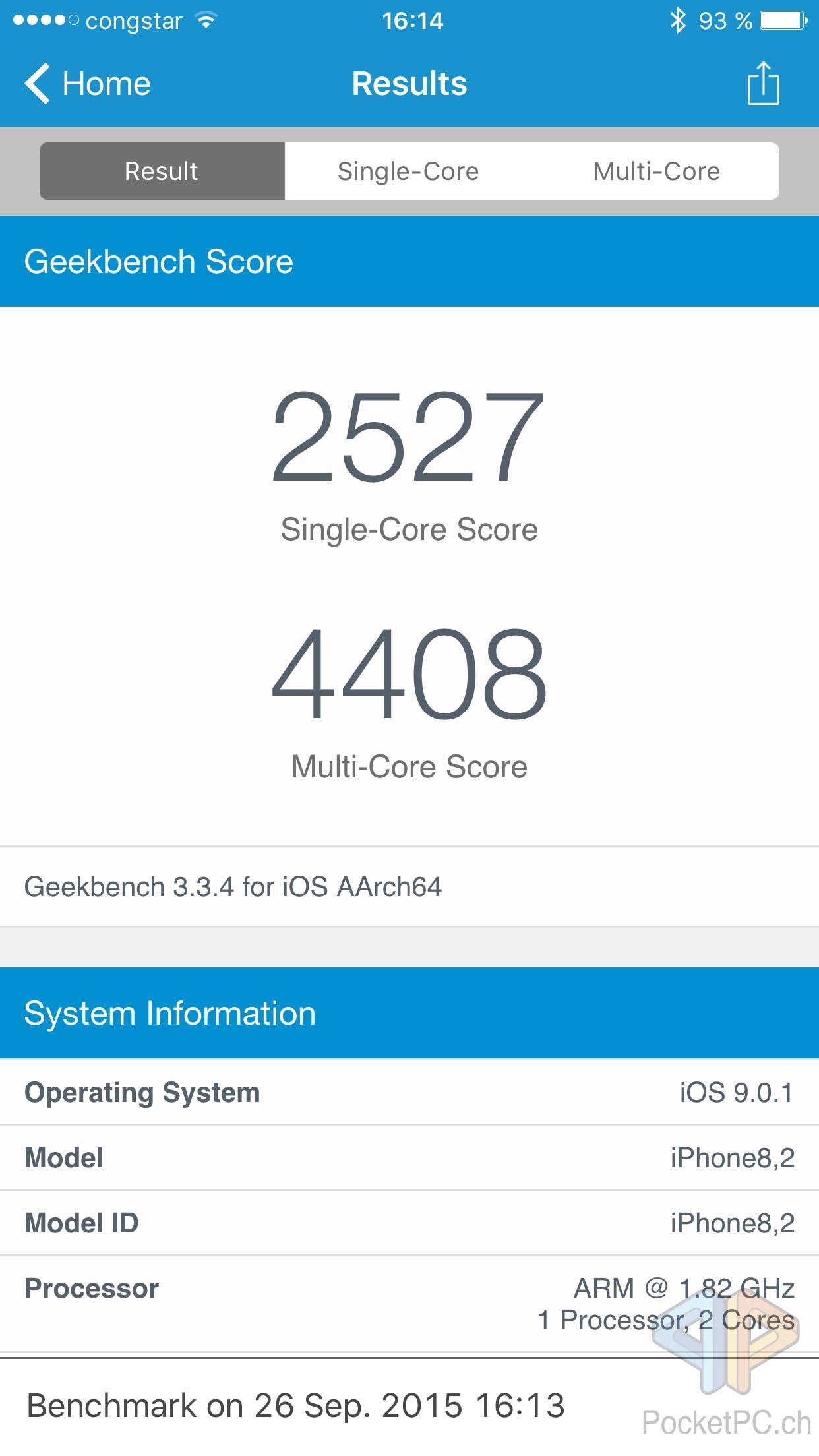 Skepsis machte sich allerdings beim Akku breit, welcher nun – auch wenn Apple das nicht öffentlich kommuniziert – anscheinend nach unten korrigiert wurde. Schlummerte im iPhone 6 Plus bisher ein Akku mit 2’910 mAh im Gerät, so wurde dieser durch die neuen Komponenten im iPhones 6s Plus auf 2’750 mAh reduziert, also um 160 mAh oder knapp 5.5 Prozent. Was man also in der Theorie deutlich spüren sollte, ist allerdings kaum bemerkbar. Das Ergebnis ist im Vergleich zum Vorgängermodell sogar identisch geblieben. Grund dafür sind kleine Änderungen innerhalb von iOS 9, welches besonders im Zusammenspiel mit dem neuen Prozessor einiges an Laufzeit herauszuholen scheint. Auch die Verkleinerung des Fertigungsprozesses des Apple A9-Chips von 20 nm auf 14 nm tragen extrem zur Laufzeit bei.