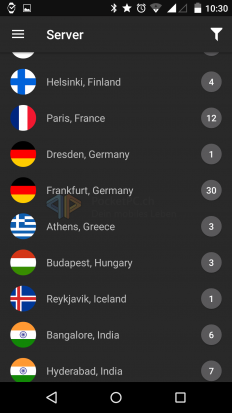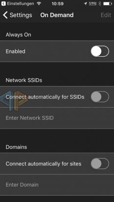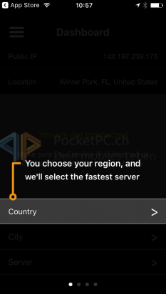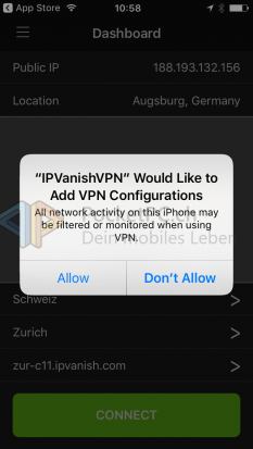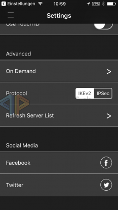 Die Apps sind alle ähnlich intuitiv zu bedienen und funktionieren einwandfrei. Leider sind sie nur auf Englisch erhältlich. Nach dem Login kann Land, Stadt und Server ausgewählt werden oder diese Auswahl der Software aufgrund der aktuellen Auslastungsdaten der Server überlassen werden. Ein Klick auf Connect verbindet nunmehr mit dem VPN Service und sorgt dafür, dass der ganze Traffic über den VPN-Tunnel läuft. Unter iOS kann neben der Always-On-Option auch ein On-Demand-Modell gewählt werden, das abhängig von der aufgerufenen URL oder der SSID des WLAN-Signals, zu dem man verbunden ist, automatisch eine VPN-Verbindung aufbaut. Gerade letzteres ist sehr nützlich, wenn man häufig in unsicheren WLAN-Netzen unterwegs ist. Darüber hinaus ist ein Widget verfügbar, ebenso wie die Android-App dies mit bringt.