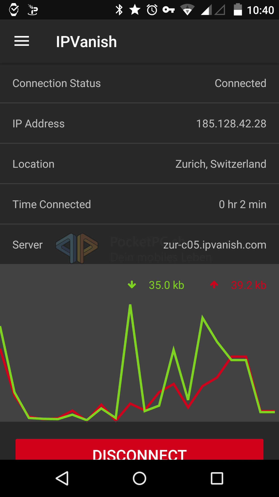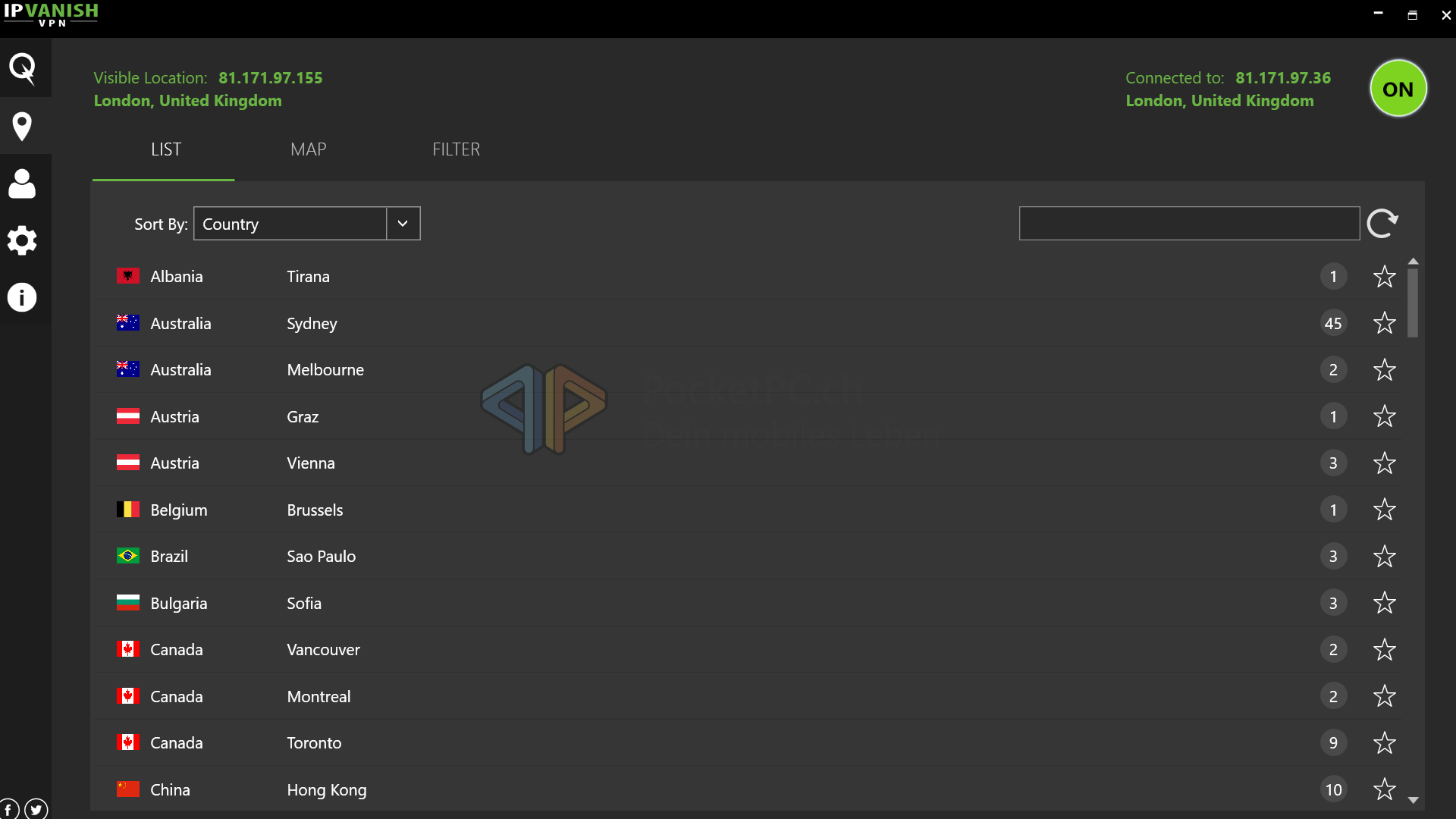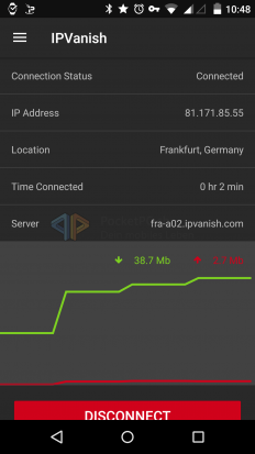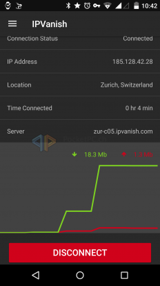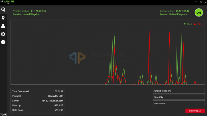 Die Geschwindigkeit über die VPN-Verbindung von IPVanish ist in der Regel bemerkenswert hoch. Bei handelsüblichen Internetanschlüssen zuhause sind via VPN immer noch Datenraten von 20-40 mb/s zu erreichen, je nachdem, in welchem Land der VPN-Server steht, zu dem man sich verbindet. US-amerikanische hingegen sind teilweise über 190 mb/s schnell und auch ein Upload von 85 mb/s ist keine Seltenheit. Zu fast allen Standorten weltweit bekommt man also mindestens 10-20 mb/s Downspeed spendiert. Kurzum: Für die allermeisten Anwendungen wird sich in den meisten Fällen kaum ein Unterschied zur direkten Internetverbindung erkennen lassen.