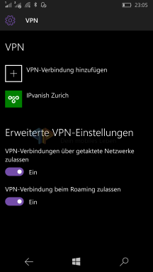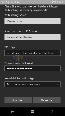 Unter Windows Phone 8.1 sowie Windows 10 Mobile ist dies, mangels passender App, egal ob IPVanish oder OpenVPN, leider nicht möglich. Die VPN-Verbindung zu IPVanish ist dennoch möglich, indem manuell eine Verbindung eingerichtet wird und zwar per L2TP/IPsec mit PSK. Jedoch sind hier die Informationen über die ursprünglichen DNS-Server weiterhin in Kraft, also keine vollkommene Anonymität gewährleistet. Für herkömmliche Web-Dienste, wie Netflix oder Groove Music, reicht es jedoch, da diese in der Regel keine DNS-Anfragen verifizieren. Torrents sind darüber jedoch nicht zu empfehlen, wobei die bekannten Torrent-clients für Windows 10 Mobile und WP8.1 sowieso relativ eingeschränkt sinnvoll einsetzbar sind.