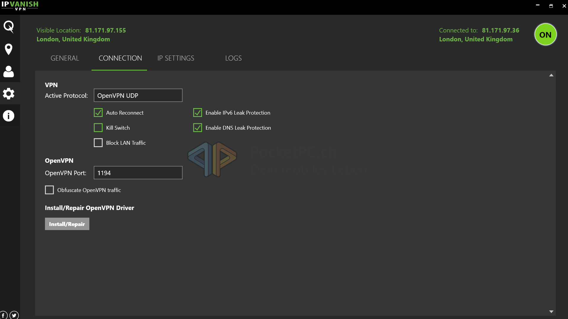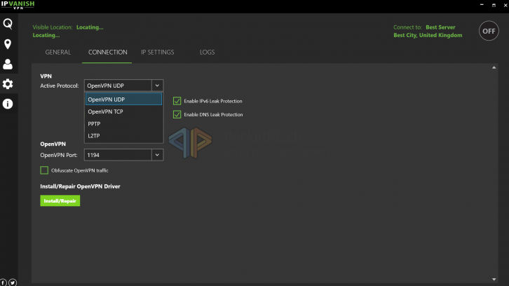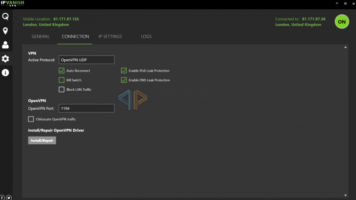 Spannend ist auch das Feature namens Kill Switch in der Windows-Software. Dies führt dazu, dass beim Abbruch einer VPN-Verbindung aller Internet-Traffic gestoppt wird, so dass auch in diesem Fall nichts über die aktuelle “eigentliche” Leitung geht. Damit kann Verhindert werden, dass durch weitere Anfragen an Server oder andere Mechanismen verschiedener Programme bei getrennter VPN-Verbindung die Privatsphäre und die Datensicherheit gewahrt bleibt. Ebenfalls kann unter Desktop-Windows-Versionen in der IPVanish-App verhindert werden, dass die Sicherheitslücke namens DNS Leak greift. Bei dieser nutzt nämlich Windows die ursprünglichen DNS-Server weiter, trotz bestehender VPN-Verbindung und ermöglicht es so Server-Betreibenden die Identität des anfragenden Servers zu erkennen – oder zumindest, dass hier mittels VPN-Verbindung angefragt wird. Wer auf die ovpn-Dateien setzt und unter Windows ohne die IPVanish-App eine Verbindung aufbaut, kann ab OpenVPN Version 2.9.3 mit dem Befehl block-outside-dns seine Privatsphäre schützen.