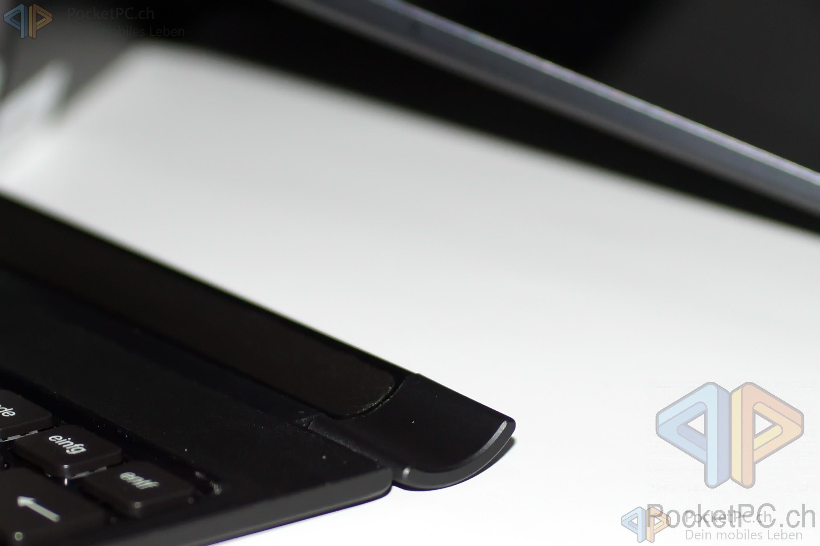 Highlight ist die im Lieferumfang befindliche Bluetooth-fähige Accutype-Tastatur. Mit Hilfe dieser lässt sich das Tablet in einem Schritt zum Notebook umfunktionieren. Des Weiteren dient die Tastatur natürlich auch zum Schutz. Bei der 8 Zoll Version ist zu beachten, dass dort keine Tastatur im Lieferumfang inbegriffen ist. Mit dem verbauten Akku, der eine Kapazität von 450 mAh umfasst, kann man bei einer täglichen Nutzung von zwei Stunden bis zu 75 Tage reichen, so gibt es der Hersteller an. In der Praxis muss dies aber erst noch getestet werden. Schön ist, dass eine kleine LED am Rand existiert, welche Auskunft darüber gibt, wie es um die aktuelle Ladesituation steht. Ein komplettes Aufladen ist nach ca. 3 Stunden erreicht. Die Rückseite der Tastatur besteht aus Aluminium, seitliche Elemente ebenfalls. Dadurch, dass die Oberfläche mit einer leichten Gummierung überzogen ist, wie auch das Tablet selbst, liegt das Gerät auch in der Hand sehr sicher. Die frontseitige Beschichtung der Tastatur dient hierbei auch als Schutz für das Display im zusammengeklappten Zustand.