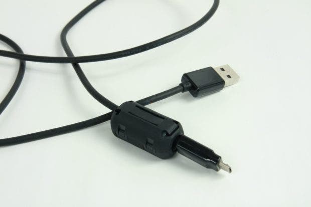 Wozu ist der Ferritkern da? Dieser soll Störungen im Kabel reduzierten und wird laut Bedienungsanleitung am Ende in Richtung des Pads angebracht. Quasi an der Micro-USB Seite. Schaden tut es jedenfalls nicht..