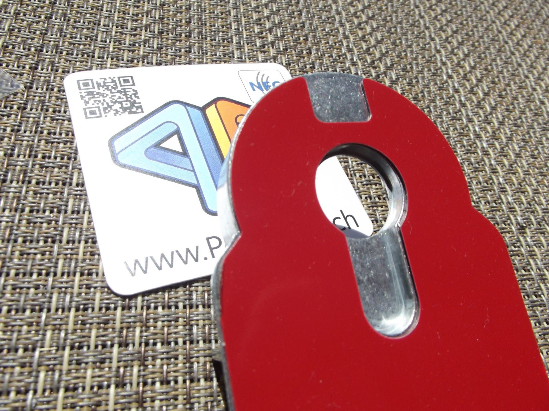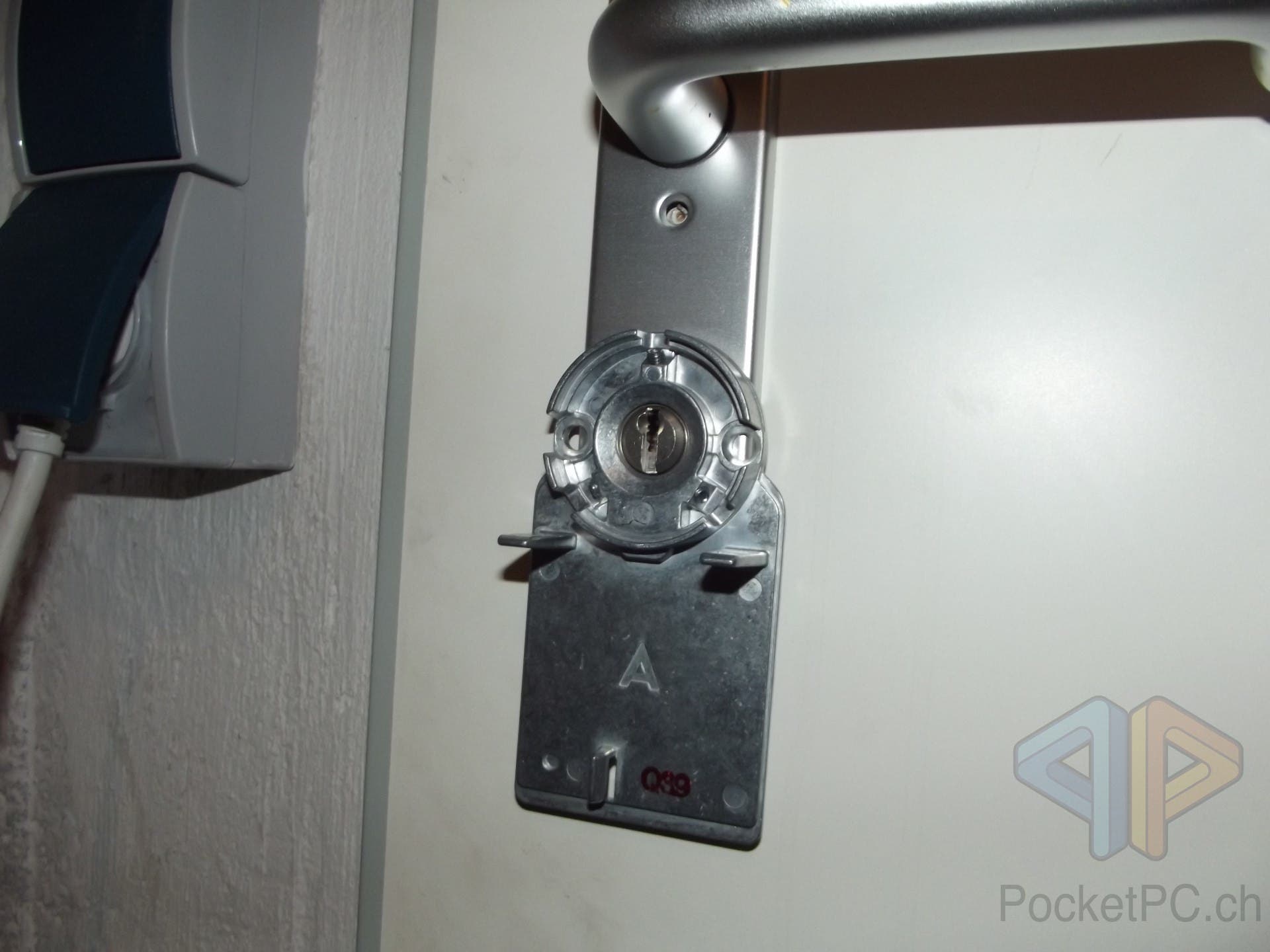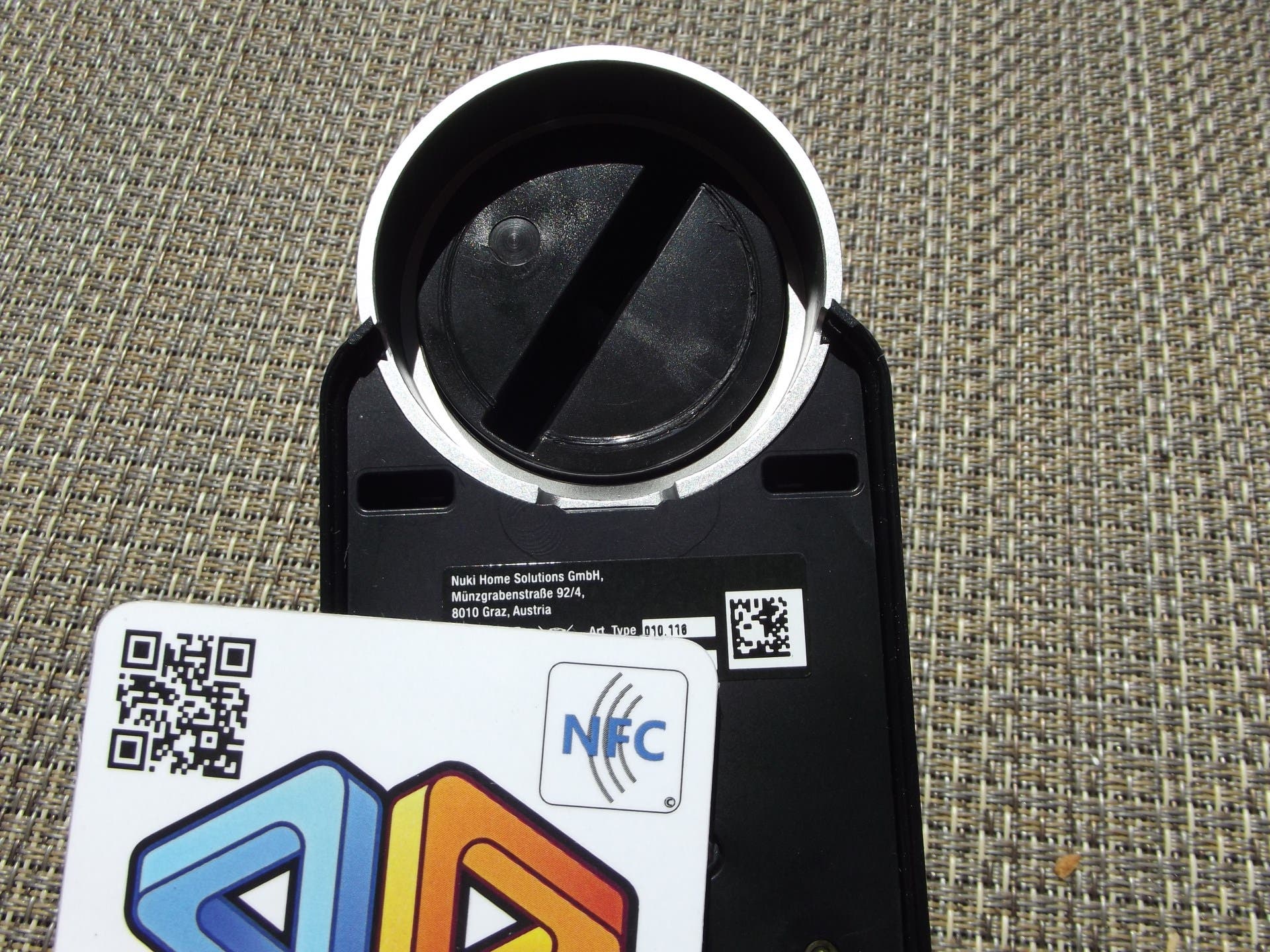 Angebracht wird das Nuki Smart Lock, indem eine der beiden Adapterplatten, je nach Schlosstyp, am Schlosszylinder befestigt wird. Dabei ist die Platte A dafür gemacht, mittels drei kleiner Madenschrauben an Europrofil-Schliesszylindern festgekrallt zu werden, wenn dieser mehr als 3 mm aus der Tür bzw. den Beschlägen heraus ragt. Der passende Imbusschlüssel dazu wird mitgeliefert. Nachdem nun die Adapterplatte an der Tür fest gemacht ist, wird das Nuki mit vier Batterien für mehr als ein halbes Jahr versorgt und angesteckt. Dabei ist zu beachten, dass das Türschloss mindestens anderthalbfache Umdrehungen machen muss, da die Software des Nuki sonst die Kalibrierung nicht abschliessen kann. Darüber hinaus empfiehlt der Hersteller, einen Schliesszylinder zu verwenden, der eine sogenannte Not- und Gefahrenfunktion hat bzw. als beidseitig ausgezeichnet ist. Dann kann von beiden Seiten ein Schlüssel im Schloss stecken und dennoch auf- und zugeschlossen werden, was den Vorteil in Verbindung mit dem Nuki mit sich bringt dass, sollte das Handy verloren gehen oder die Stromversorgung des Nuki abbrechen oder sonst ein Problem auftauchen, man dennoch ohne Probleme in die eigene Wohnung kommt.