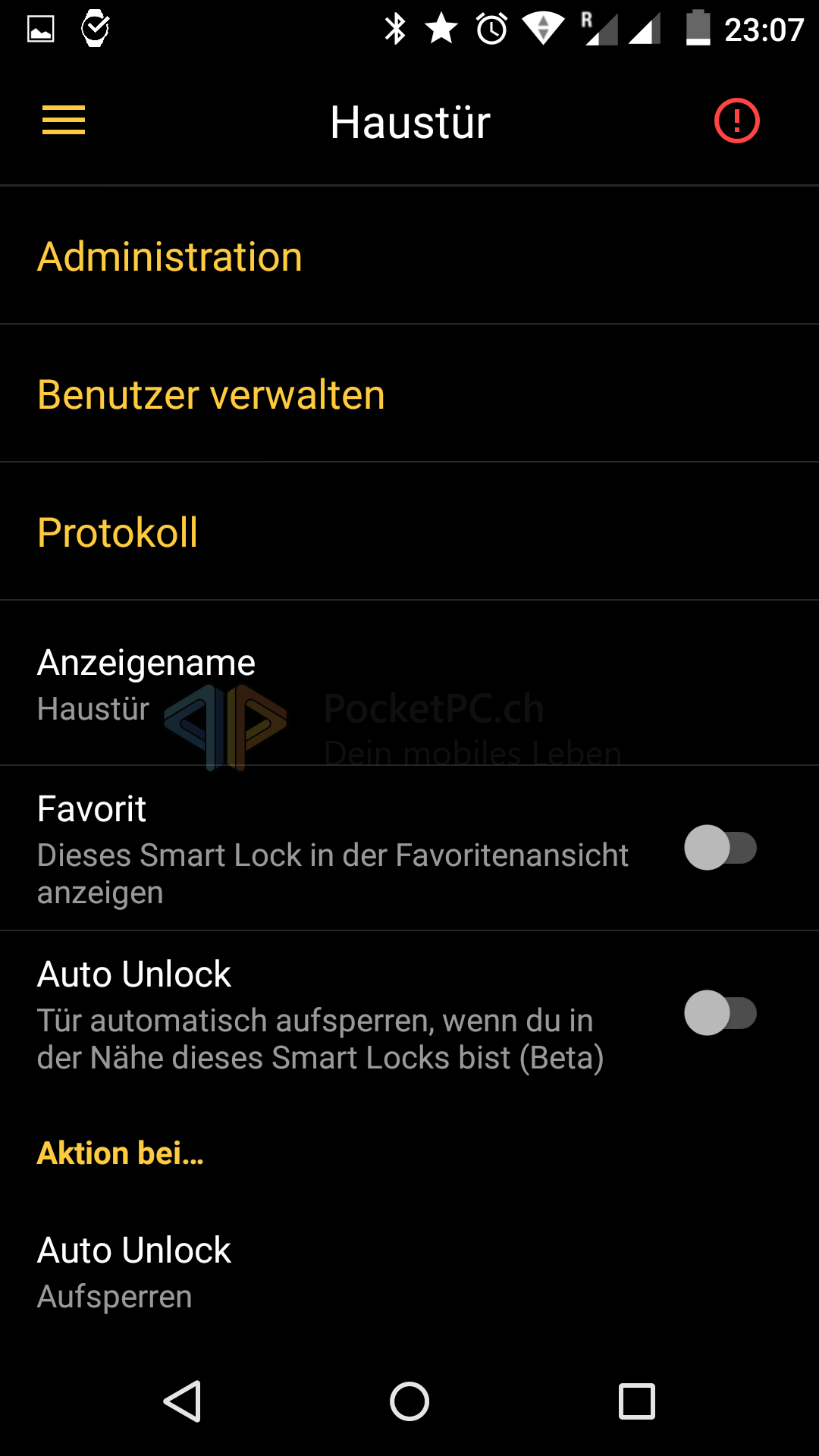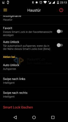 Eingerichtet wird das smarte Schloss natürlich per App. Diese ist für iOS und Android verfügbar, erhielt gerade vor kurzem ein Update und ist übersichtlich und funktionell gestaltet. Ebenfalls ist die App für die Apple Watch und Android Wear-Uhren verfügbar, so dass vom Handgelenk aus die Tür entriegelt oder gesperrt werden kann. Leider wird Windows Phone nicht unterstützt.