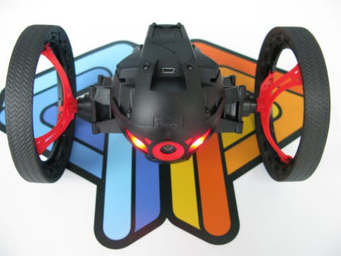 Der Jumping Sumo ist im Prinzip eine Kugel, die kaum grösser als ein Tennisball ist. Er wiegt nur 185 Gramm, balanciert auf einer einzelnen Achse, an der zwei robuste Räder angebracht sind, welche aus weichem Styropor gefertigt sind. Die Räder lassen sich verstellen: Räder ausgefahren für mehr Stabilität oder eingefahren für eine bessere Wendigkeit. Die Felgen bestehen aus elastischem Kunststoff.