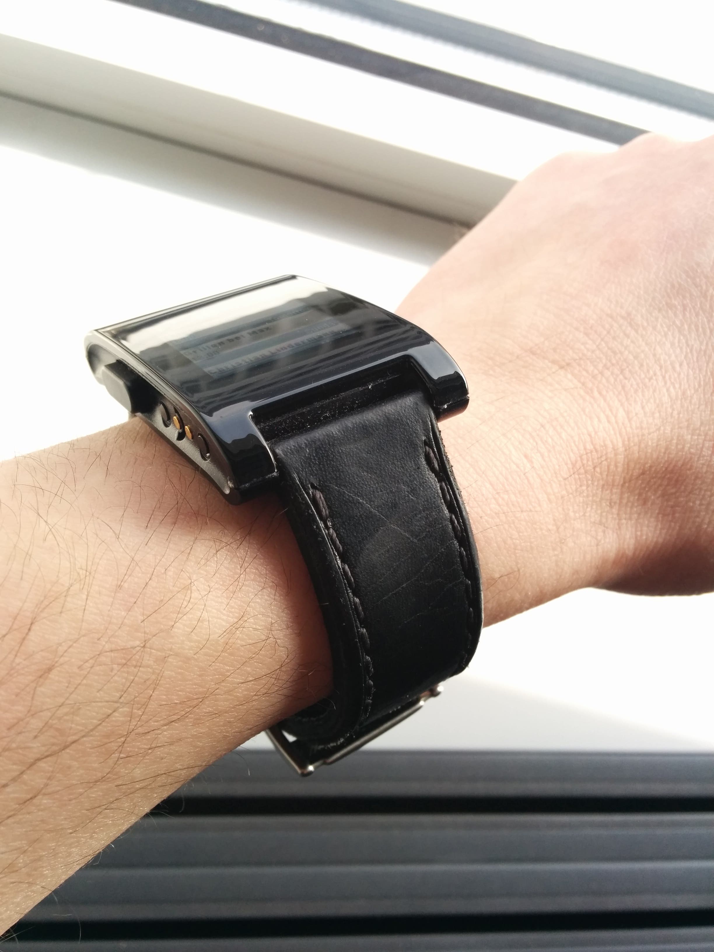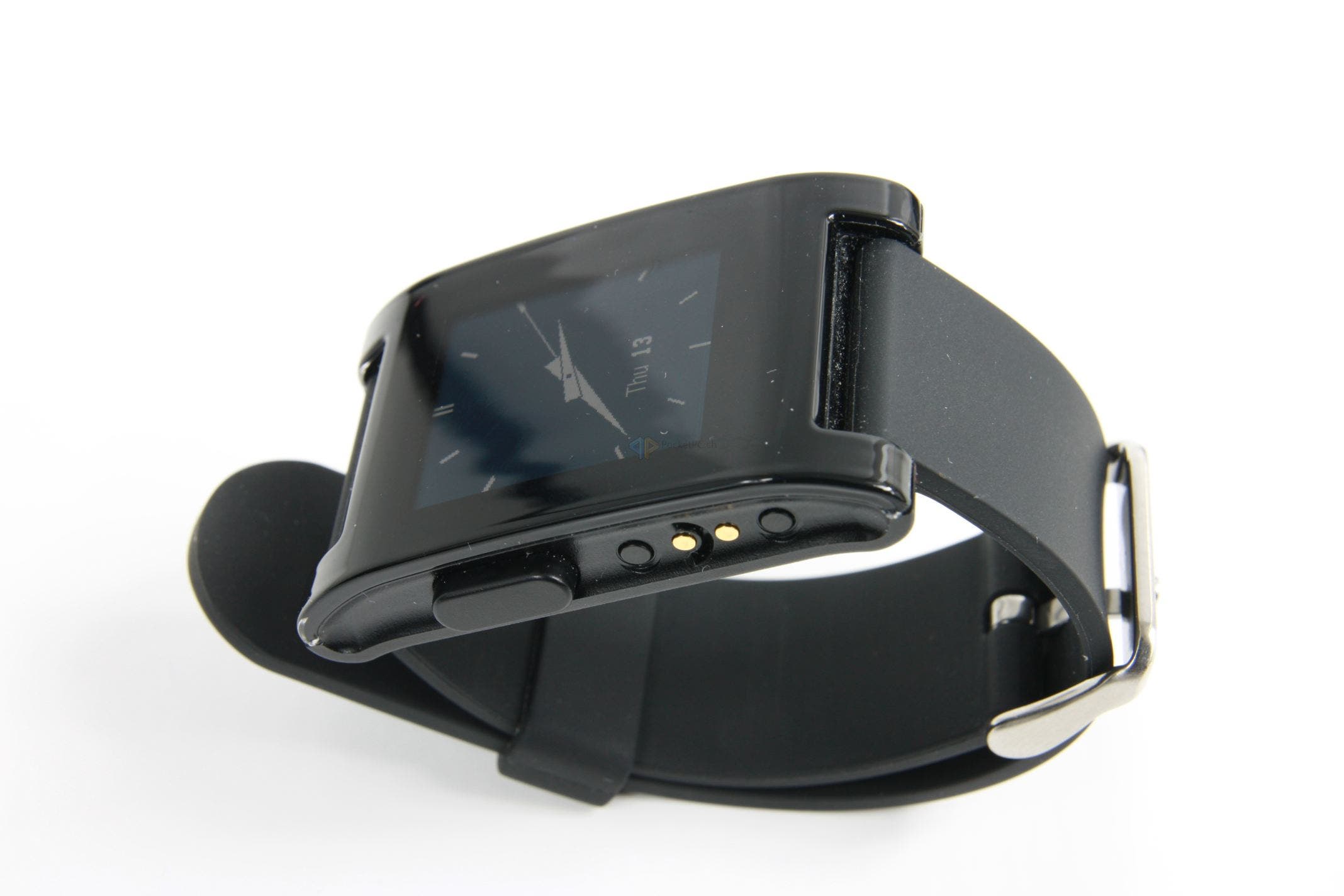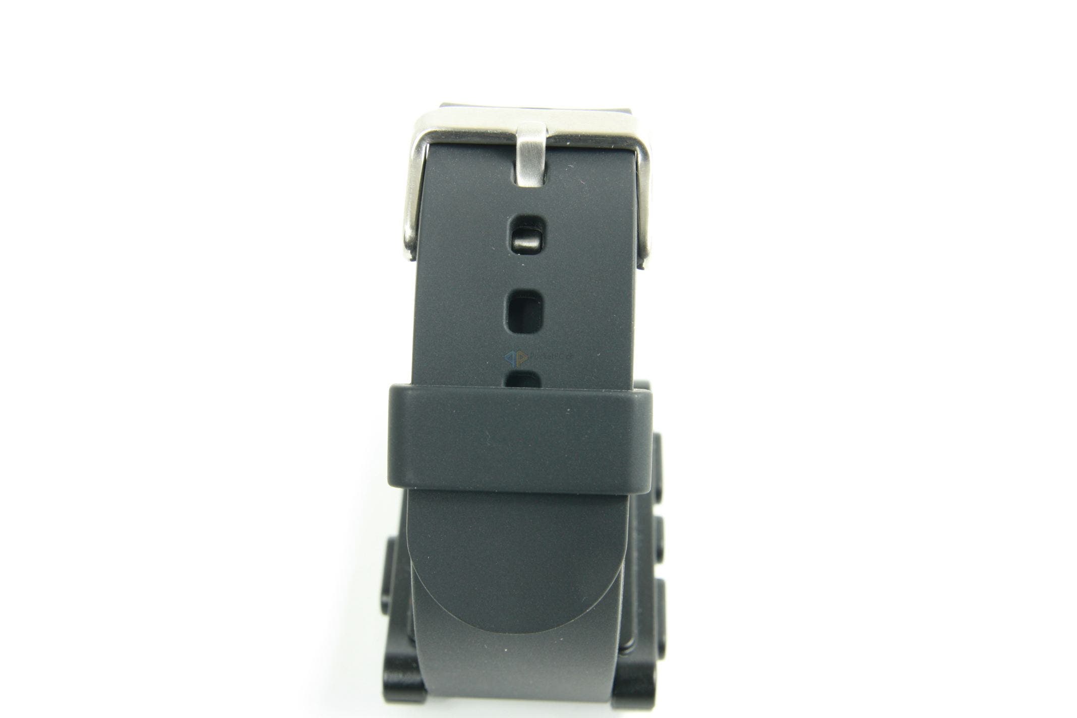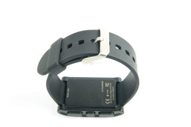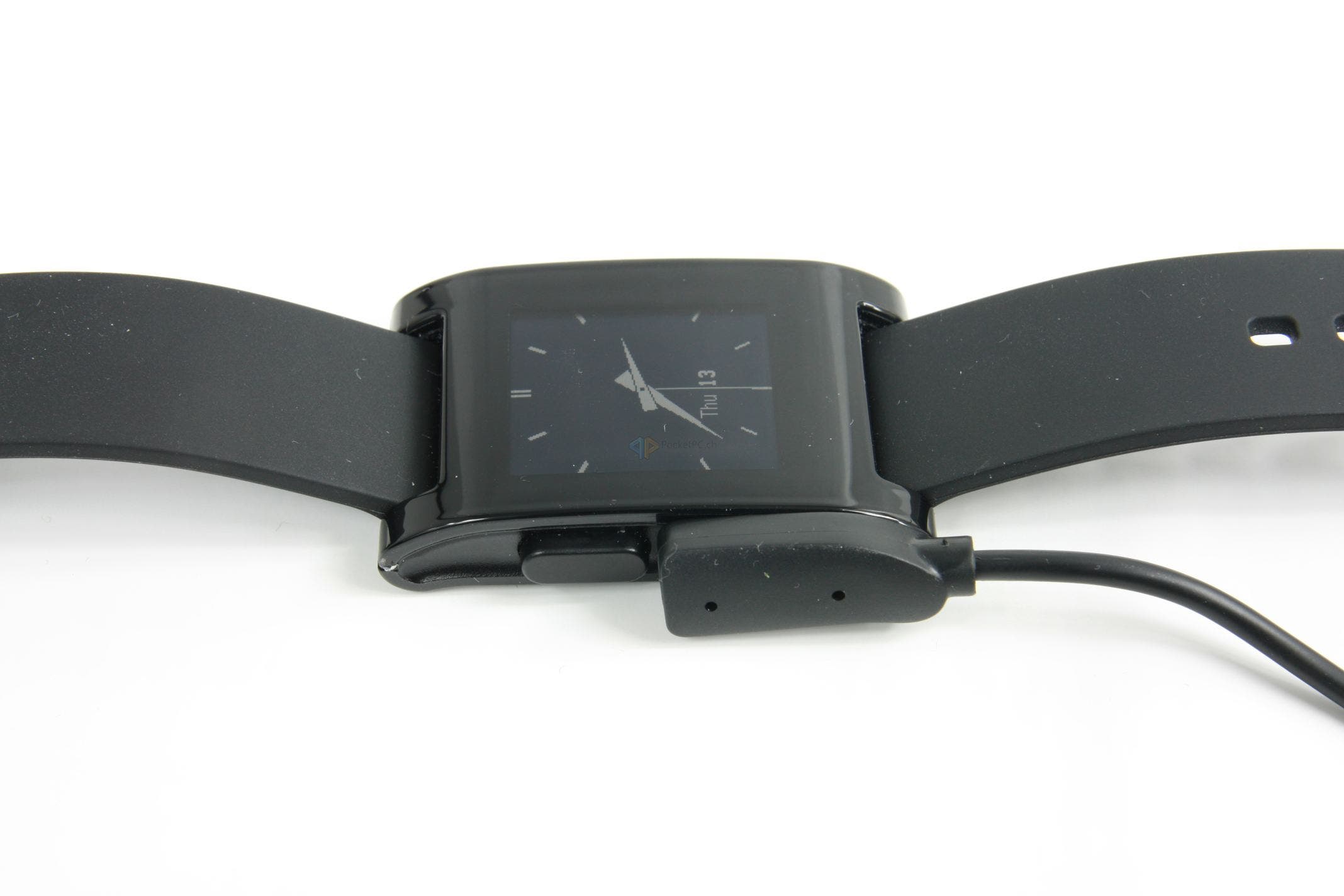 Der erste Eindruck ist in Ordnung. Was bedeutet das? Wir haben hier ausschliesslich Plastik verarbeitet, was nicht billig, aber auch nicht wirklich sonderlich hochwertig wirkt. Das Kautschukarmband tut sein Übriges dazu, für den Preis hätte man mehr erwarten können. Wahrscheinlich hat die Entwicklerfirma genau aus dem Grund den nächsten Schritt mit der Pebble Steel eingeleitet und hochwertigere Materialien verbaut. Fasst man die Uhr aber an und betätigt die Knöpfe, verfliegt der erste, mässige, Eindruck wieder. Hier wackelt nichts, die Tasten haben einen guten Druckpunkt und das Armband lässt sich sauber an- und ablegen.