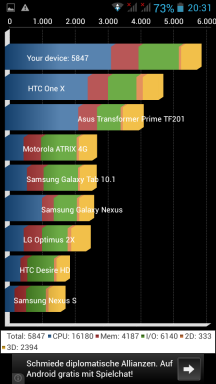 Das Herz des Gerätes ist ein Prozessor von Mediatek, der MT6589T. Das “T” steht dabei für Turbo und meint die höchste Leistung dieser zwei Jahre alten Prozessortechnik. Der Prozessor hat vier Kerne auf Cortex A7 Basis und taktet mit je 1.5 GHz. Begleitet wird der Prozessor von einer PowerVR SGX544 GPU (Grafikkarte). Diese stammt aus dem ersten Quartal 2013 und entspricht der Leistungsklasse eines Samsung Galaxy S4.