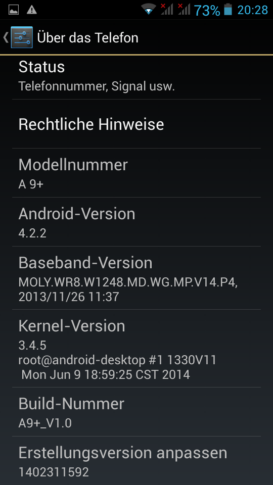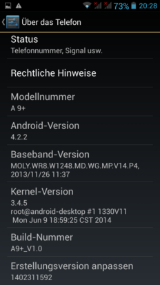 Bei der Software kommt fast unverändertes Android 4.2.2 zum Einsatz. So hat man wenigstens keinen unnötigen Ballast. Die Kernelversion ist von Mitte Juni 2014, also recht aktuell. Ob, wann und woher es Updates für das Gerät gibt, wird niemand sagen können, da nicht einmal klar ist, welcher Hersteller hinter dem Gerät steckt.