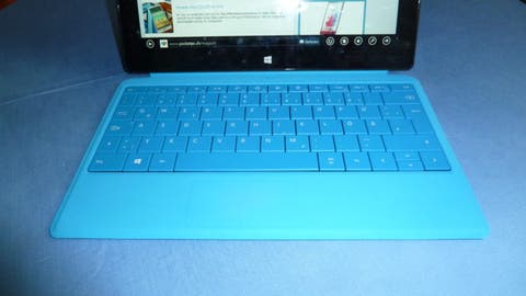 Das Cover ergänzt die Surfacemodelle ideal und man kann damit so gut arbeiten wie mit einem kleinen Laptop. Die magnetische Verbindung zwischen Cover und Tablet ist verschleissfrei und sehr robust. Es gibt keine kleinen Plastikhaken, die leicht abbrechen können, wie bei anderen Herstellern. Die Oberfläche fühlt sich sehr angenehm an und das gesamte Gerät wirkt sehr hochwertig. Einziger Kritikpunkt ist das kleine Touchpad. Es eignet sich zwar sehr gut zur Mausnavigation, aber die schwierige Ausführung der Zoomgeste auf dem Homescreen trübt etwas den guten Eindruck. Darüber hinaus lässt sich das Pad auch schlecht erfühlen, da es nur durch eine leichte Einprägung begrenzt ist. Zu den Tastenbereichen am unteren Rand gibt es gar keine Abtrennung, diese sind lediglich durch eine Einprägung in der Mitte unterteilt.