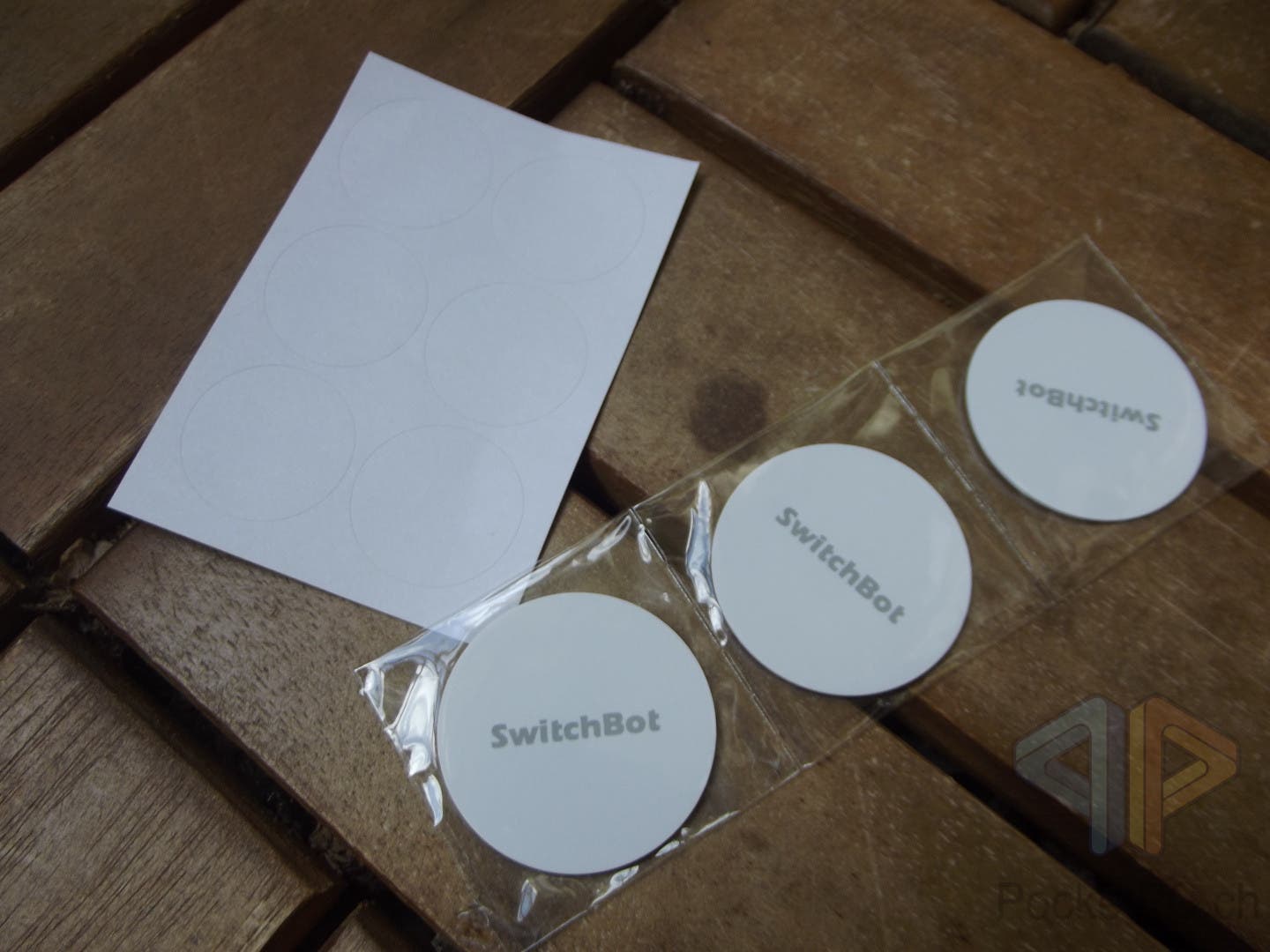Die SwitchBot Tags werden in einem Druckverschlussbeutel geliefert und sind einzeln eingeschweist. Zudem ist ein Bogen mit weissen, beschriftbaren Sticker enthalten.