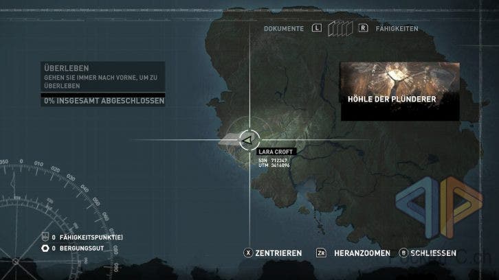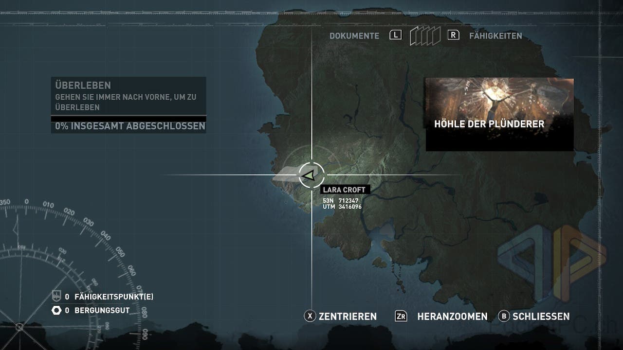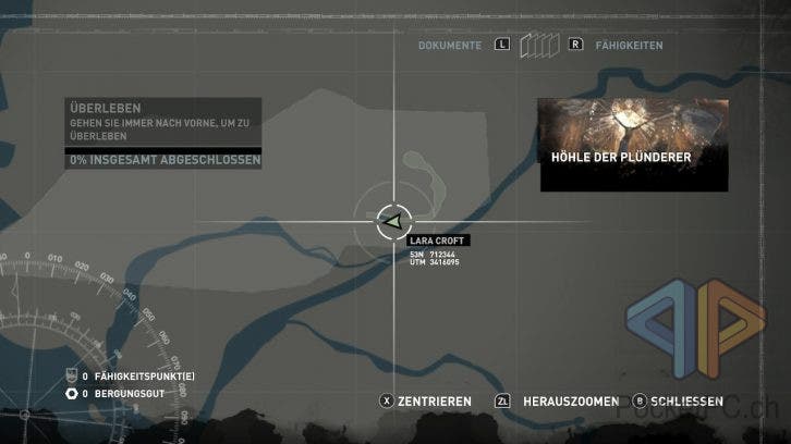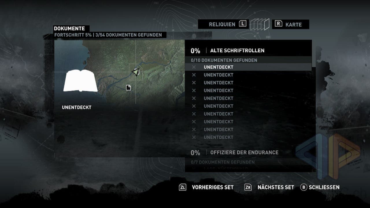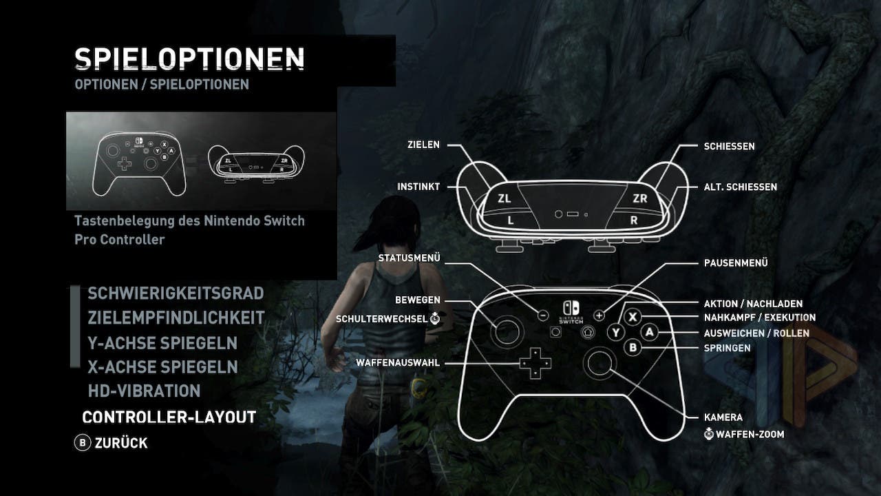 Neue Fähigkeiten werden entsprechend eingeführt und gehen leicht von der Hand. Zwar kann die Steuerung nicht individuell angepasst werden, aber sie ist im Pausen-Menü stets abrufbar und graphisch dargestellt. Das Spiel lässt sich übrigens auch toll mit aufgeteilten JoyCons zocken. Gerade mit Lara Croft zum Bogenschiessen durch den Dschungel zu hetzen macht so nochmal etwas mehr Spass! Schön gelöst ist die Einbindung der Neige- und Kippsensorik: Wenn man nämlich Artefakte der Side-Quests aufstöbert, können diese im Menü untersucht werden, wozu wir die Switch (2) oder den Controller neigen und kippen.