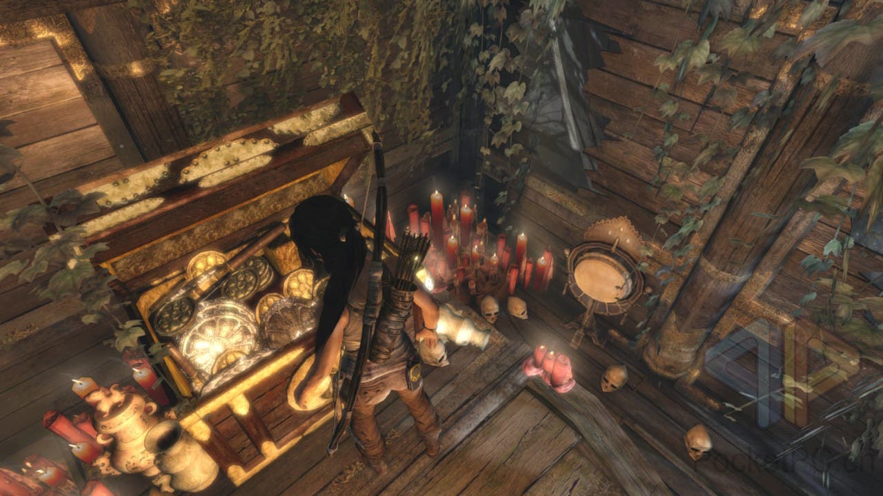Über die Insel verteilt finden sich zahlreiche optionale Gräber, die zur Erkundung da sind, oft nicht sehr einladend. Zudem gibt es Kisten mit Beutegut und Waffenbauteilen. Diese Ressourcen ermöglichen es, vorhandene Waffen zu verbessern oder neue, leistungsstärkere Modelle herzustellen. Solche Anpassungen nimmt die Lara Croft in Lagern vor, die im Laufe der Kampagne entdeckt werden und als sichere Rückzugsorte dienen. Neben der Möglichkeit zur Waffenmodifikation erlauben diese Lager auch das schnelle Reisen zwischen bereits besuchten Orten auf der Insel.