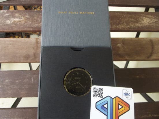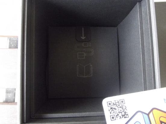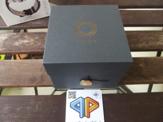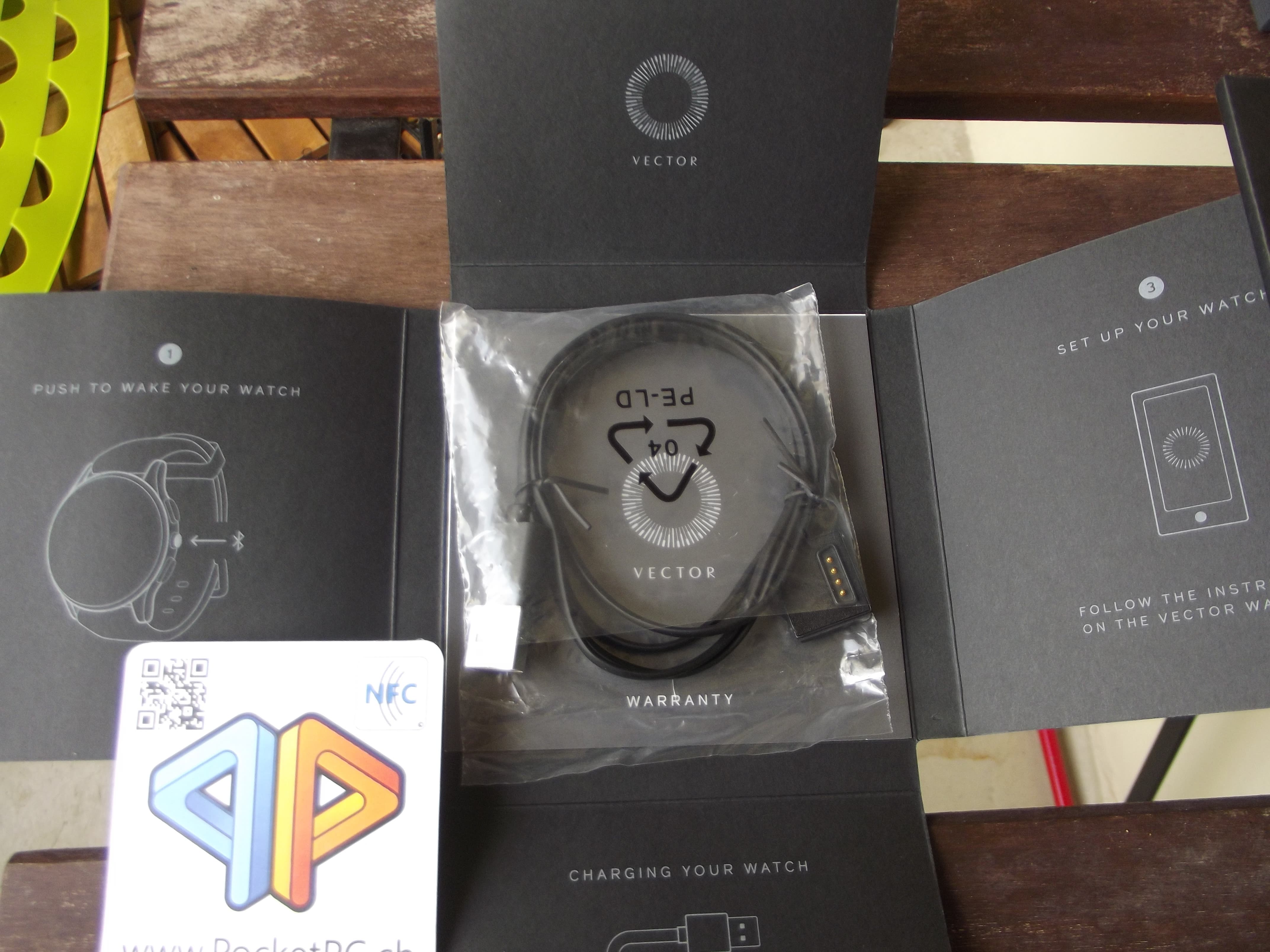 Die Luna von Vector Watch wird in einer quadratischen Box geliefert, deren Innenleben schon fast klassisch mit einer Kordel verschlossen wird. Wird diese und damit die Klappe geöffnet, sieht man sofort das Ziffernblatt der Uhr in einem Passe-partout, auf dem Deckel den Schriftzug “what truly matters” – was wirklich zählt. Die Uhr ist auf einem Schaumgummi aufgebracht und darunter findet sich ein Umschlag mit der Kurzanleitung, Garantiehinweis und Ladekabel. Letzteres besteht aus einem kurzen USB-Kabel mit einem proprietären, vierpoligen magnetischen Federkontaktstecker. Durch die Trapezform können die Kontakte nicht vertauscht werden.