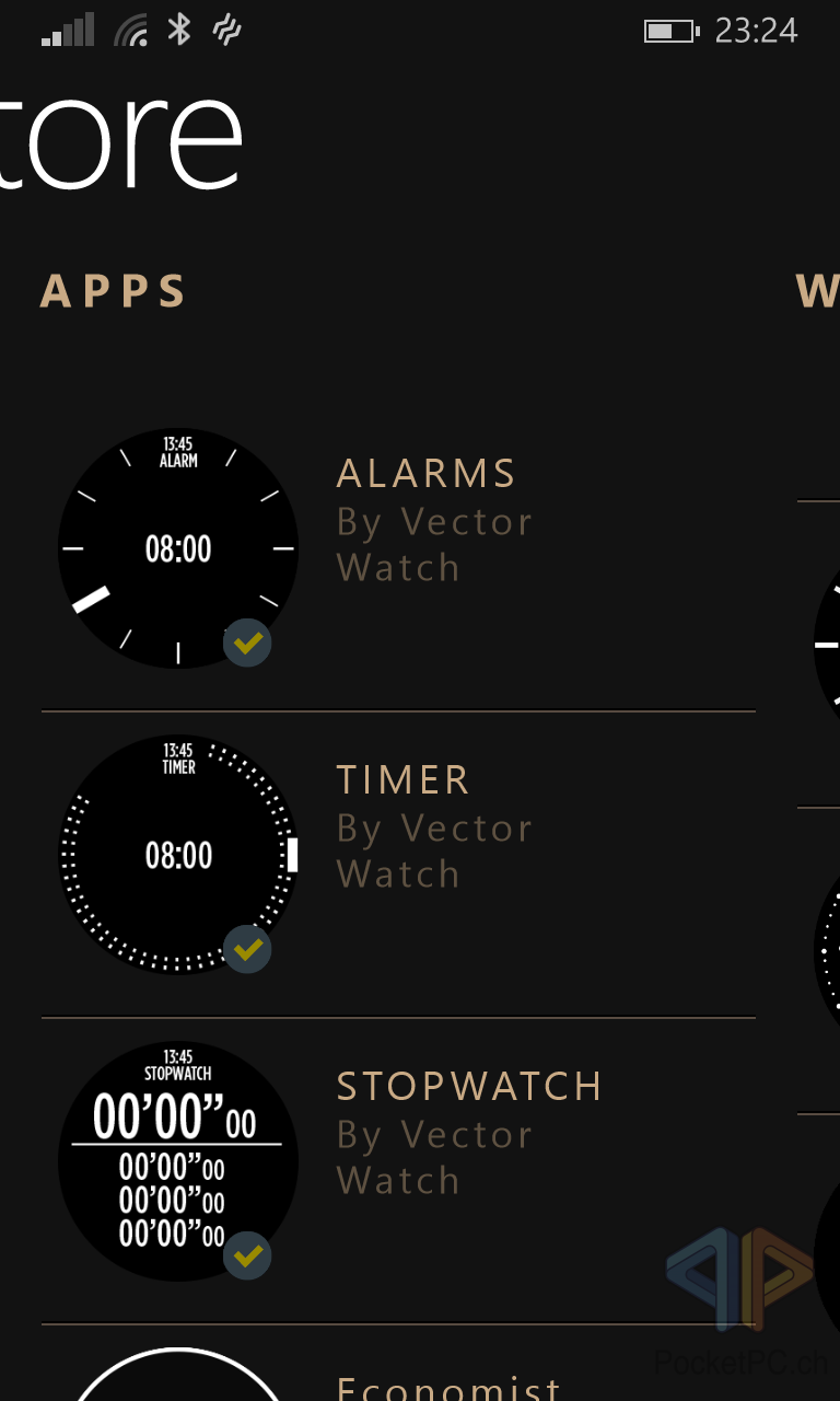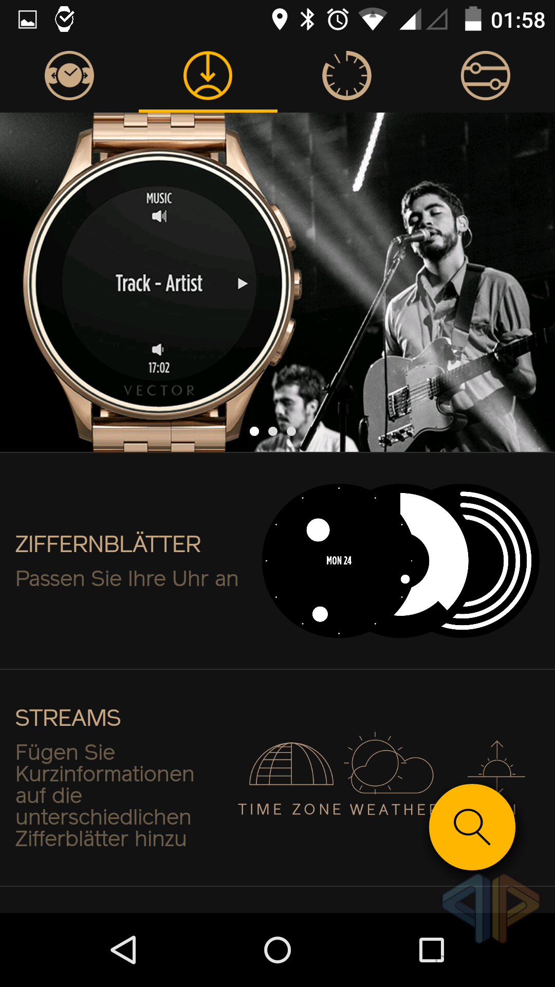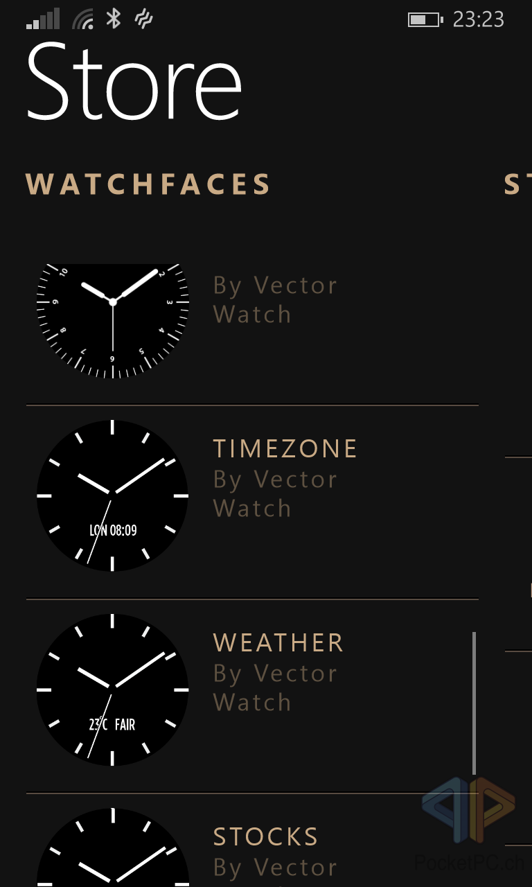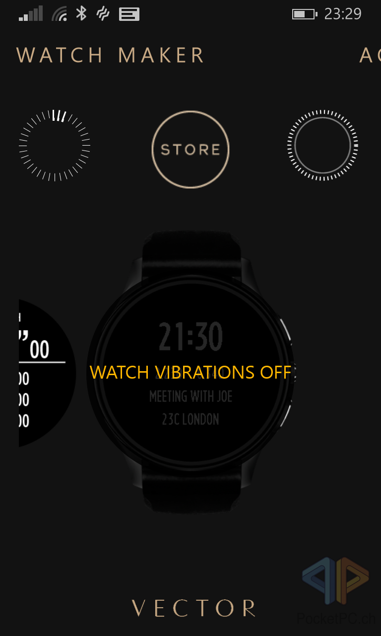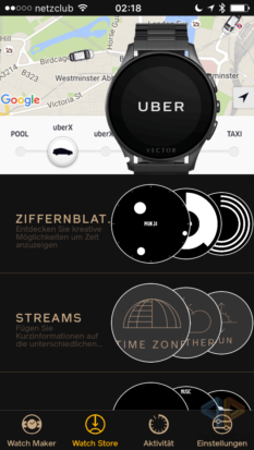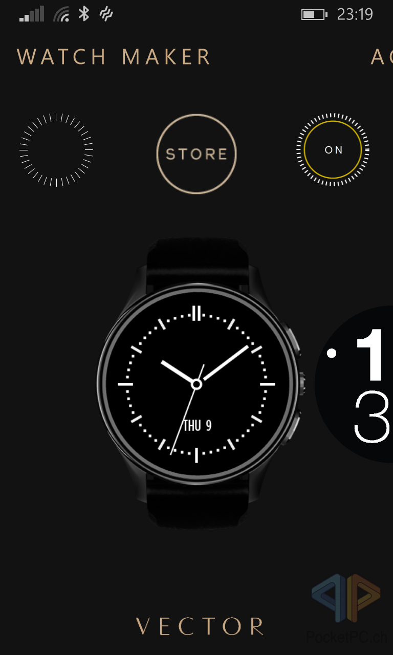 Die aktuellen App-Versionen, die gerade eben eingetroffen sind, sind zwar auch noch nicht perfekt, aber sie werden immer besser. Die Windows App soll Ende April endlich auf Version 1.1 aktualisiert werden. Doch was kann die Uhr bzw. die App? Man kann, nachdem ein Vector-Account erstellt wurde, in den die Einstellungen synchronisiert werden, verschiedene Ziffernblätter und Uhr-Apps auswählen sowie konfigurieren.