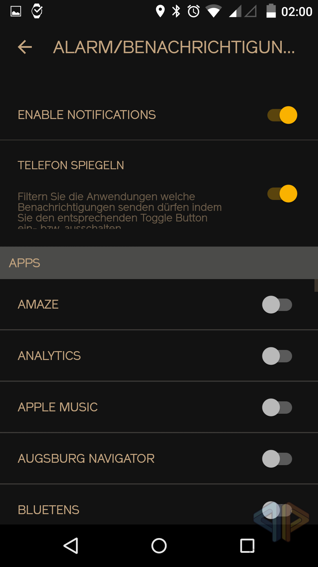 Die Apps funktionieren tadellos und unter Windows 10 Mobile sind auch die Benachrichtigungen, im Gegensatz zu Windows Phone 8.1, nicht merklich verzögert. Beim älteren mobilen Betriebssystem aus Redmond sind doch Wartezeiten von mehreren Sekunden bis zum Eintreffen der Benachrichtigungen auf dem Wearable zu verzeichnen. Auch tauchen manche gar nicht auf, doppelt oder so spät, dass beispielsweise die betreffende E-Mail längst schon gelöscht wurde. Unter Android ist derartiges Verhalten, wie unter iOS und Windows 10 Mobile, nicht zu beobachten. Einzig stört, dass eine persistente, nicht optionale Benachrichtigung im Notification Center von Android vorhanden ist, die den Verbindungsstatus der Uhr anzeigt. Das hätte wirklich hübscher umgesetzt werden können. Andere Apps können ja auch andauernd im Hintergrund laufen, ohne solche Hintertürchen zu nutzen.