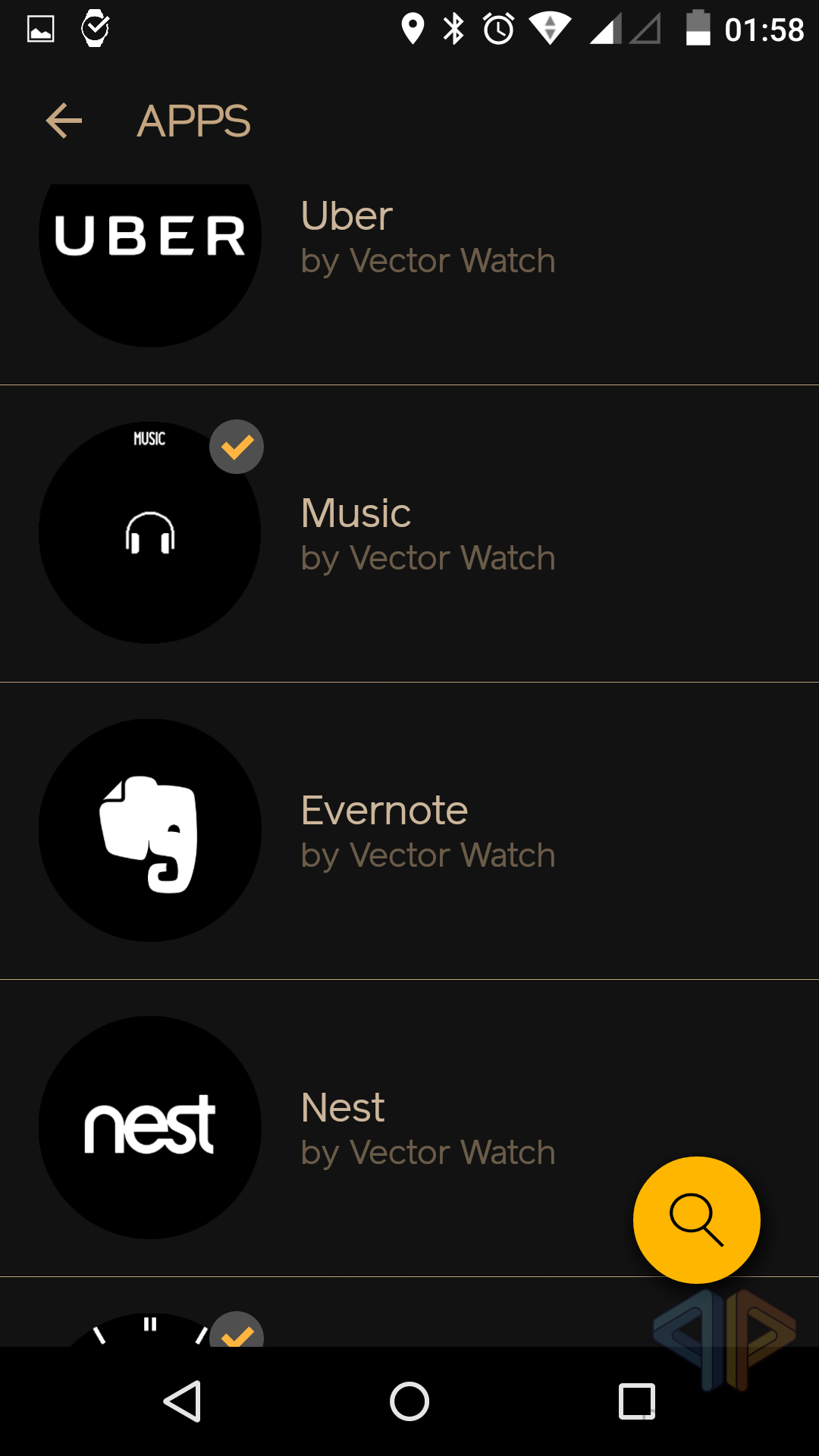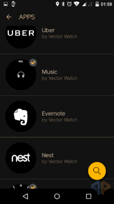 Weiter gibt es so genannte Watch Apps für die Vector, die einen ganzen Funktionsumfang anbieten. So gibt es hier beispielsweise eine Uber-App oder Evernote, Nest, Activity, Alarms, Timer, Stoppuhr oder Nachrichtenapps von The Economist, Cnet, BBC und ESPN. Die Music-App ist ebenfalls verfügbar und ermöglicht die Steuerung der Musik und Lautstärke per Smartwatch. Im Oktober dieses Jahres soll ein SDK für Developer heraus kommen, so dass neben den bisher bestehenden Apps und Steams auch bald neue im App-eigenen Watch Store zu finden sein sollten. Die Aktivität und Schritte sowie den Schlaf und dessen Qualität misst die Uhr über ihre Sensoren, ähnlich wie dies viele Fitnessbänder wie z. B. das Fitbit Surge auch machen. Daraus errechnet die Uhr die gegangenen Schritte und so die Distanz, zusammen mit Angaben über Geschlecht, Grösse und Gewicht, den Kalorienverbrauch. Hier ist jedoch fest zu halten, dass die Vector Watch Luna im Vergleich jeden Tag gut 10% unter den Messwerten anderer Produkte liegt und auch merklich unter der Realität – schade.