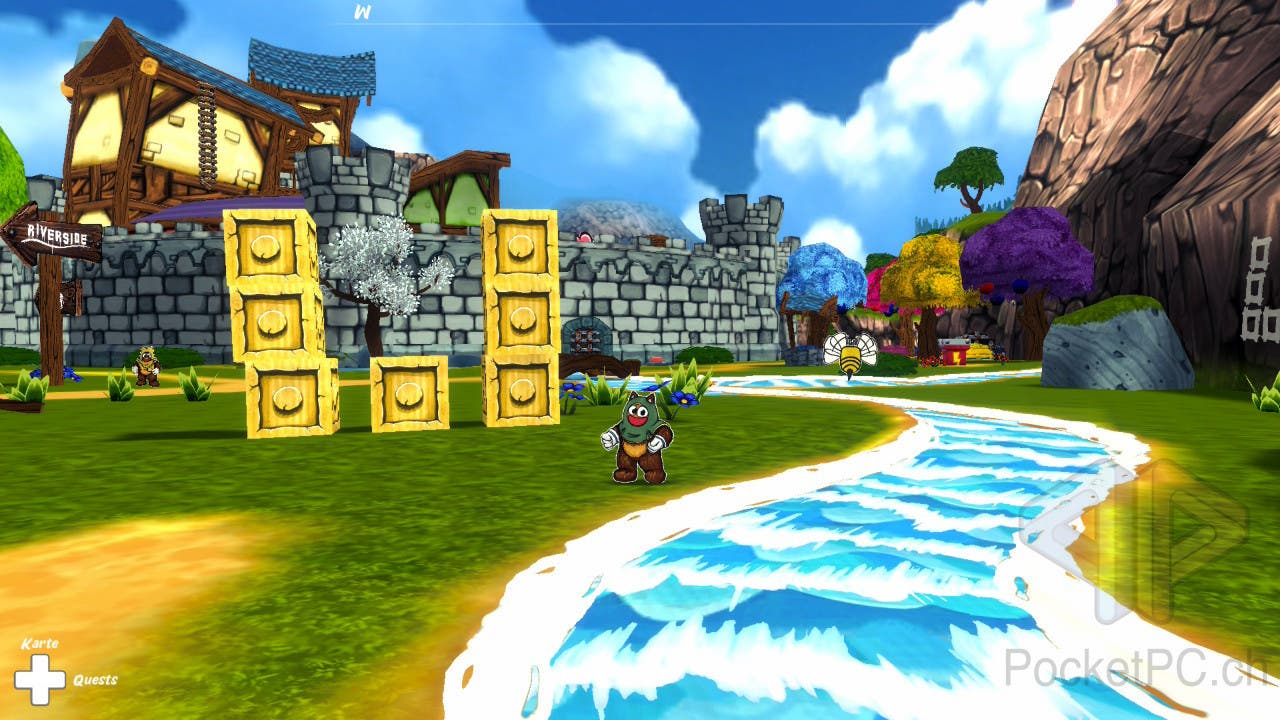 Neben der anfänglichen Stadt erwartet euch eine witzige “Open World” mit unterschiedlichen Biomen. Bild: PocketPC.ch / Laser