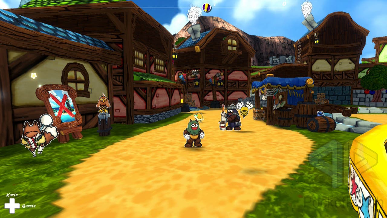 Ansonsten bietet das Spiel auch viel Altbewährtes. Ruffy and the Riverside ist nämlich im Kern ein Plattformer und fühlt sich nicht ohne Grund ein wenig wie Banjo-Kazooie an. Ruffy und Pip bilden ein sehr ähnliches Team und es gibt häufig witzige und witzige Sprungeinlagen, sowie direkte Kämpfe, die ihr mit Ruffys Fäusten austragen müsst. Zudem gibt es unterschiedliche Sammelobjekte, die sich aber weniger wie Hausaufgaben anfühlen, da einige von ihnen nicht nur hinter Rätseln verborgen sind sondern teilweise auch Lore freischalten können.