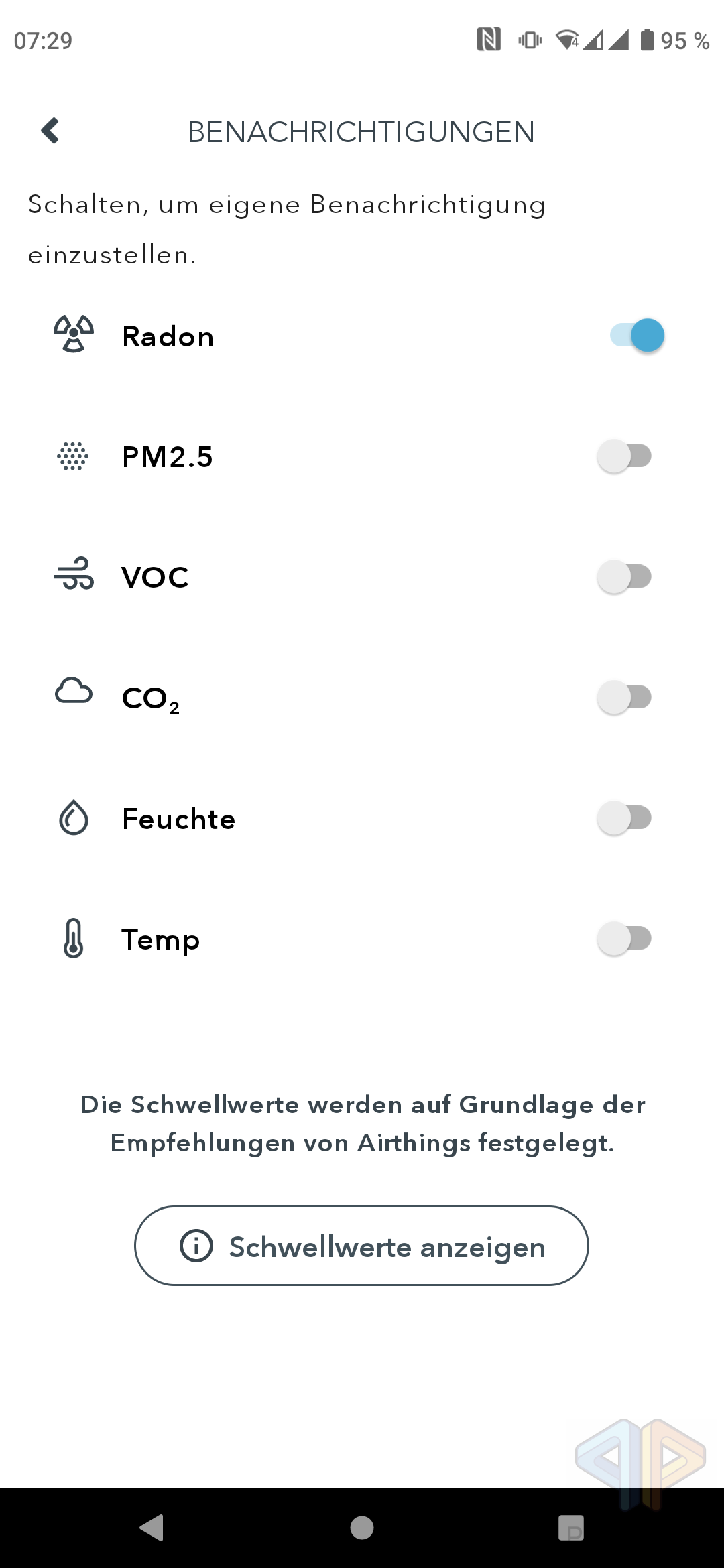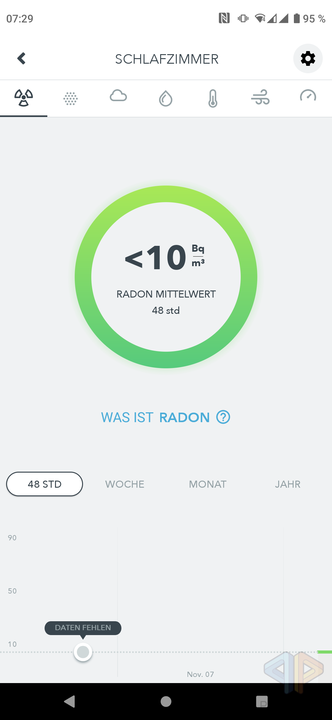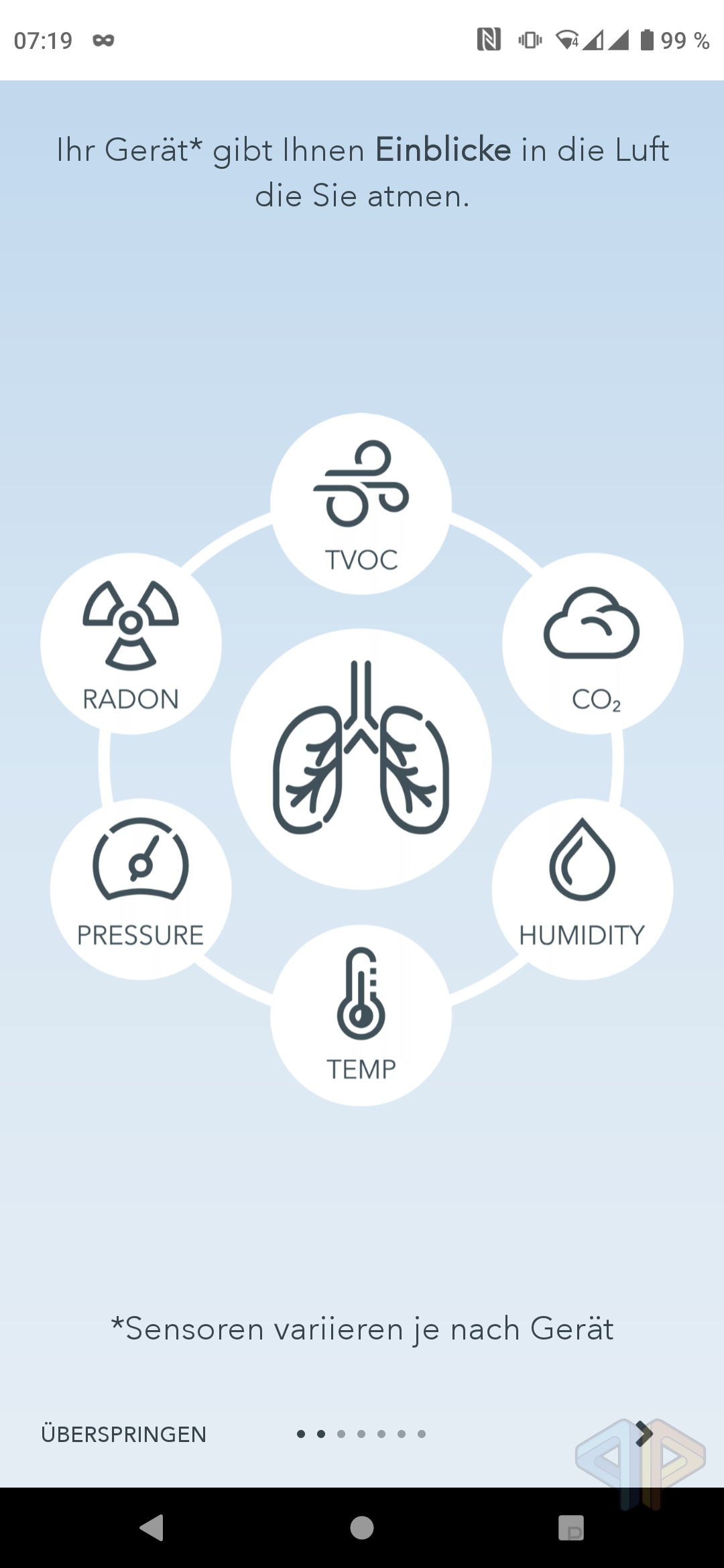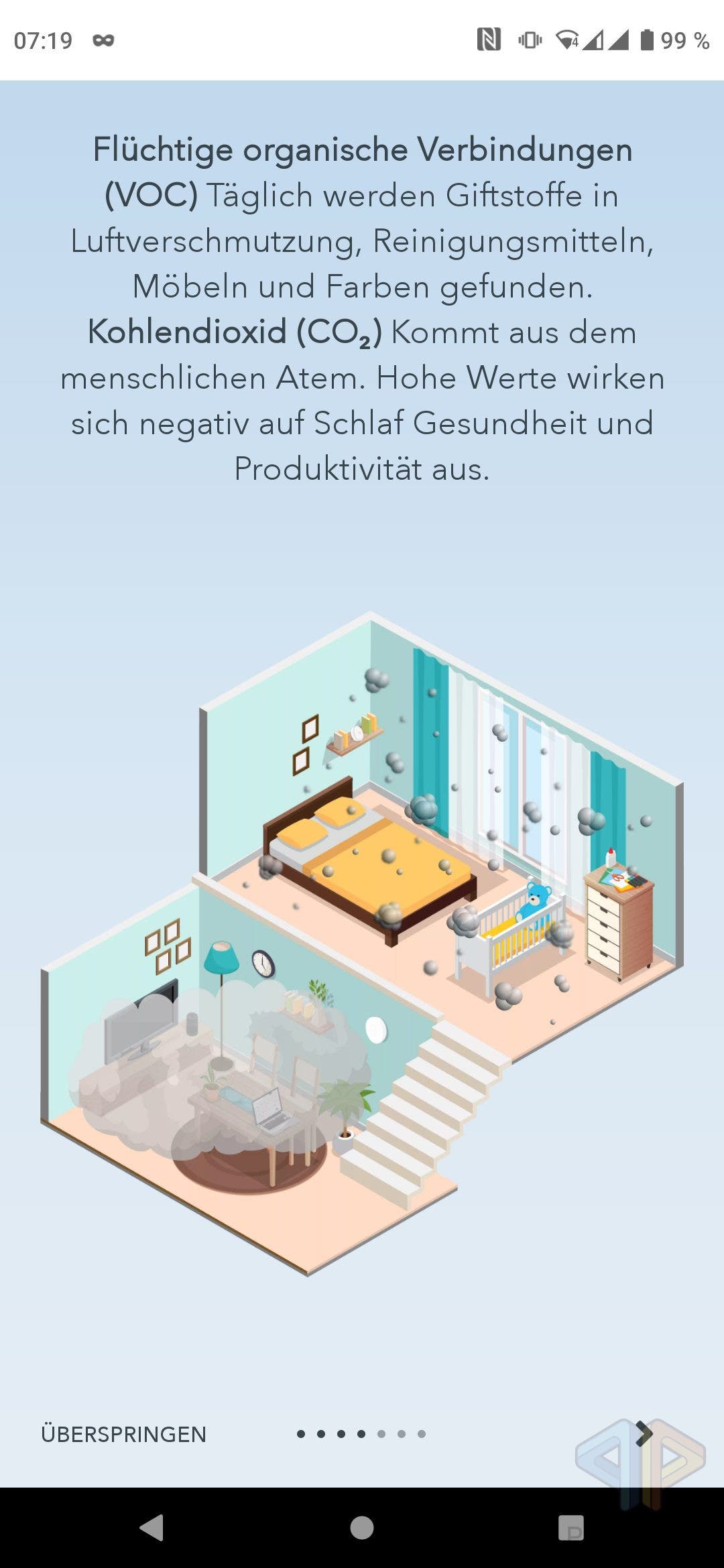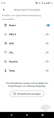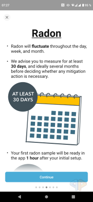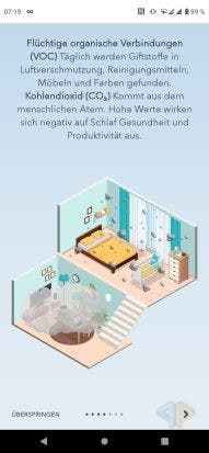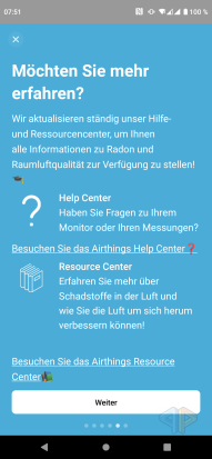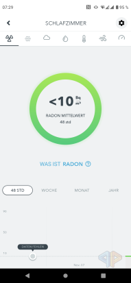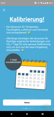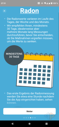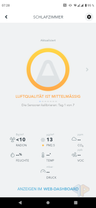 Die VOC- und CO2-Sensoren kalibrieren sich kontinuierlich, indem sie die sauberste Luft als Basis zur Unterscheidung von verschmutzter Luft verwenden. Aus diesem Grund ist es wichtig, dass der Sensor ein mal pro Woche sauberer Luft ausgesetzt wird. Daran erinnert die App regelmässig. Zudem bekommt man auf die hinterlegt E-Mailadresse, wenn man nicht widerspricht, auch regelmmässig Hintergrundinformationen zu den Messwerten, zu Radongas etwa, und kann sich so ein besseres Bild machen.