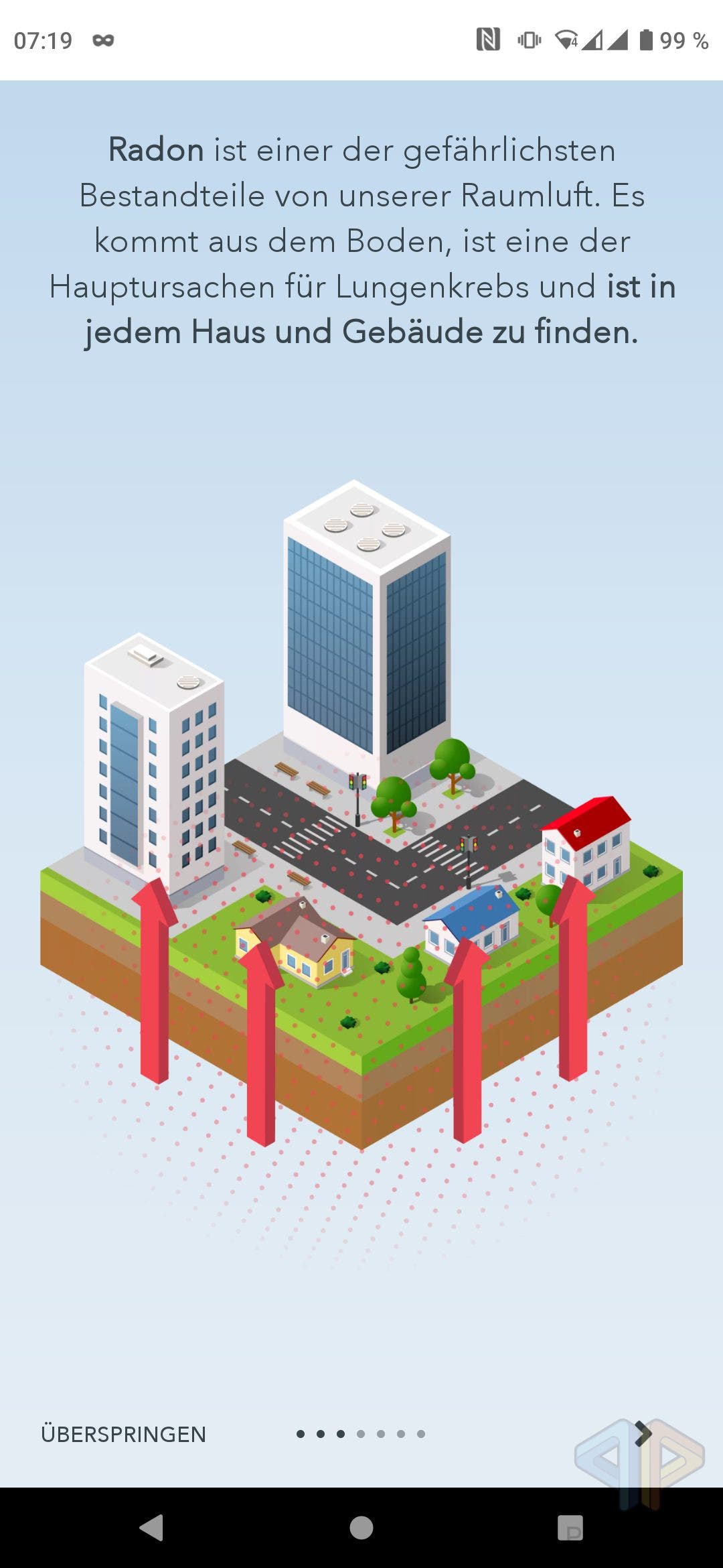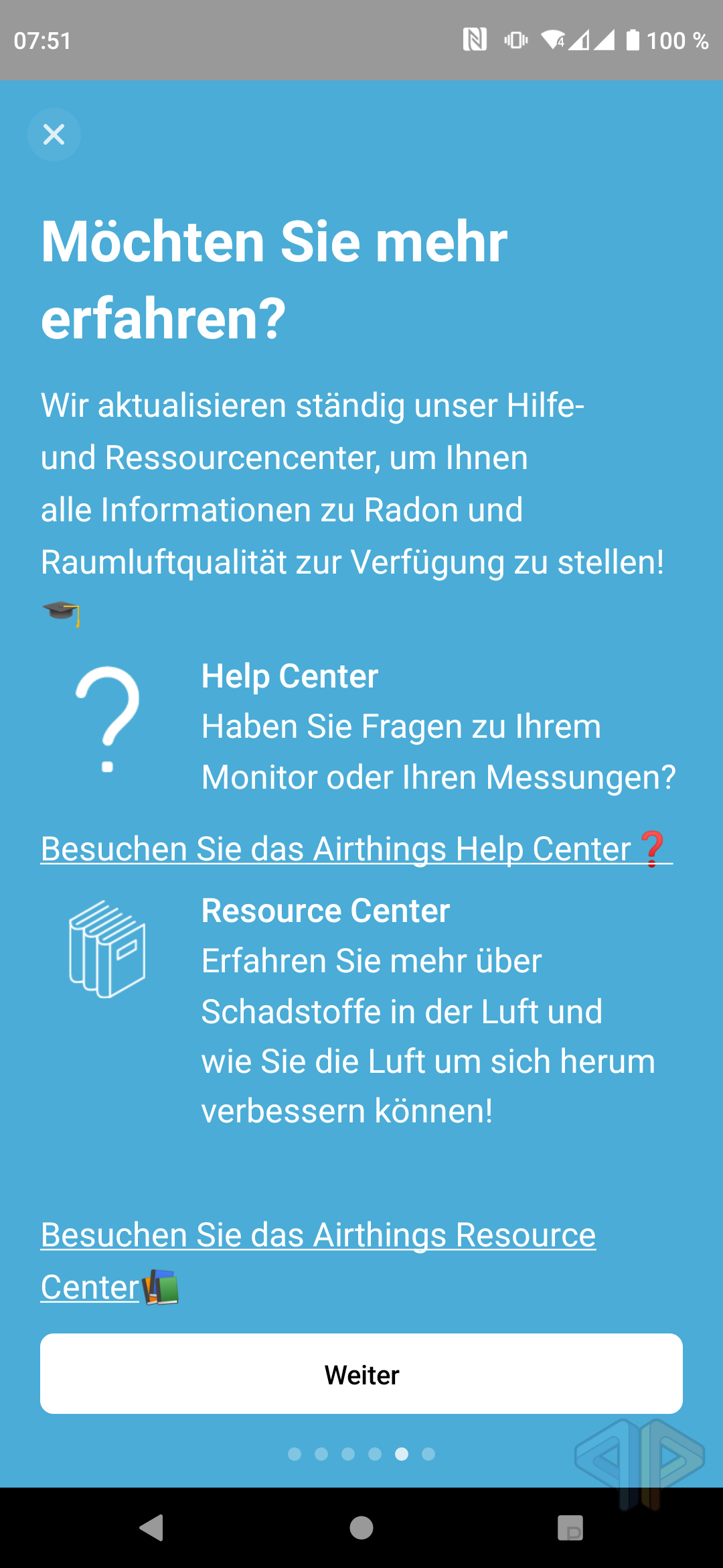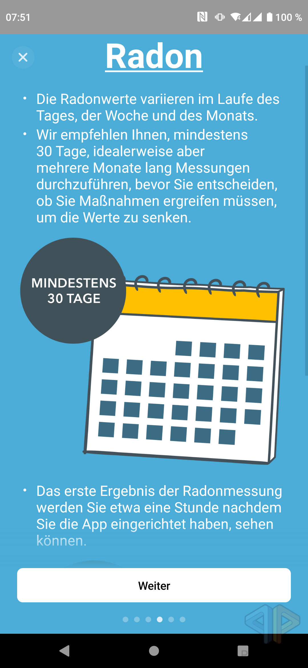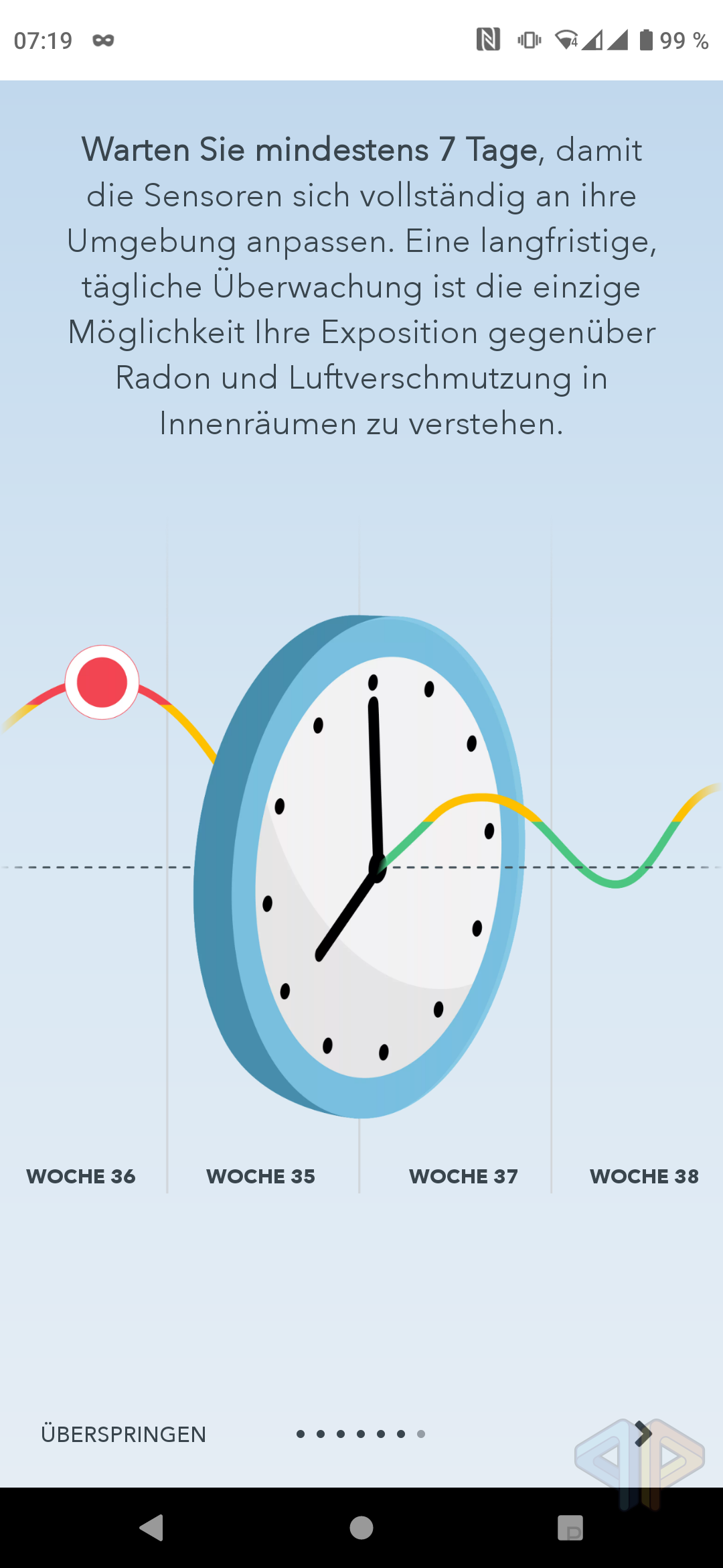 Die VOC- und CO2-Sensoren kalibrieren sich kontinuierlich, indem sie die sauberste Luft als Basis zur Unterscheidung von verschmutzter Luft verwenden. Aus diesem Grund ist es wichtig, dass der Sensor ein mal pro Woche sauberer Luft ausgesetzt wird. Daran erinnert die App regelmässig. Zudem bekommt man auf die hinterlegt E-Mailadresse, wenn man nicht widerspricht, auch regelmmässig Hintergrundinformationen zu den Messwerten, zu Radongas etwa, und kann sich so ein besseres Bild machen.