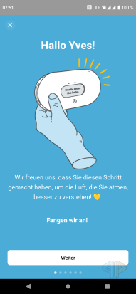Das klappt aber soweit alles sehr gut. Danach stellt man das Gadget irgendwo auf oder montiert es an der Wand oder an einem Schrank. Wichtig ist, dass es auf Atemhöhe am besten funktionieert, also 110 bis 170 cm über dem Boden und nicht über 2 Meter Höhe angebracht werden sollte.