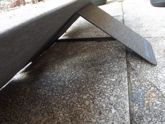 Denn die beiden Teile haben einen Abstand von guten drei Zentimetern, da der Winkel, den die verbindende Elektronik geknickt werden darf, nicht sehr klein ist. Dafür kann das Panel von BigBlue so auch zum Transport über etwas schieben, etwa am Rucksack.