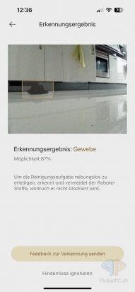 Fehlerkennungen können in der App korrigiert oder bestimmte Objekte für zukünftige Reinigungsfahrten als zu ignorierende Hindernisse markiert werden. Ein interessantes Beispiel für die Präzision der Hinderniserkennung zeigt sich bei flachen Objekten: So wird beispielsweise eine Personenwaage als erhöhte Plattform erkannt und vom Roboter entsprechend nicht befahren.