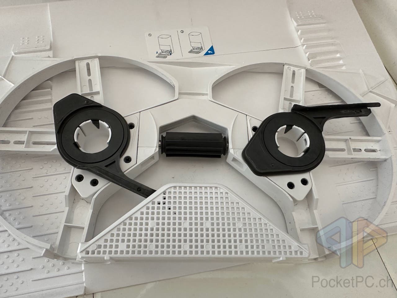 Der Lieferumfang umfasst einen grossen, knapp 20 kg schweren Karton. Dreame schützt alle Komponenten sorgfältig in Einzelverpackungen, die sich problemlos entnehmen lassen. Die deutsche Bedienungsanleitung mit Schnellstartanleitung macht die Inbetriebnahme einfach. Im Deckel der Reinigungsstation wurde diesmal keine Kurzanleitung eingeklebt, wie es noch beim Dreame L10s Ultra der Fall war.