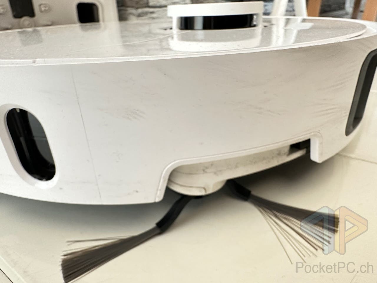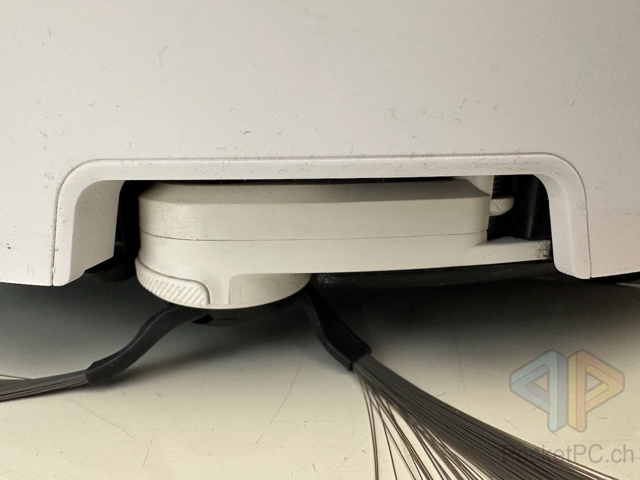 Auch die vordere Seitenbürste wurde mit einem Ausschwenkmechanismus (Side Reach) ausgestattet. Diese Innovation ermöglicht es, Staub und Schmutz effektiv von den Ecken zur Mitte zu befördern, wo er vom Roboter aufgesaugt wird. Die Seitenbürste fährt zudem automatisch nach oben fahren – ein bedeutender Vorteil im Wischmodus, da sie dadurch trocken bleibt.