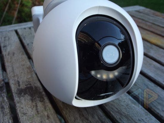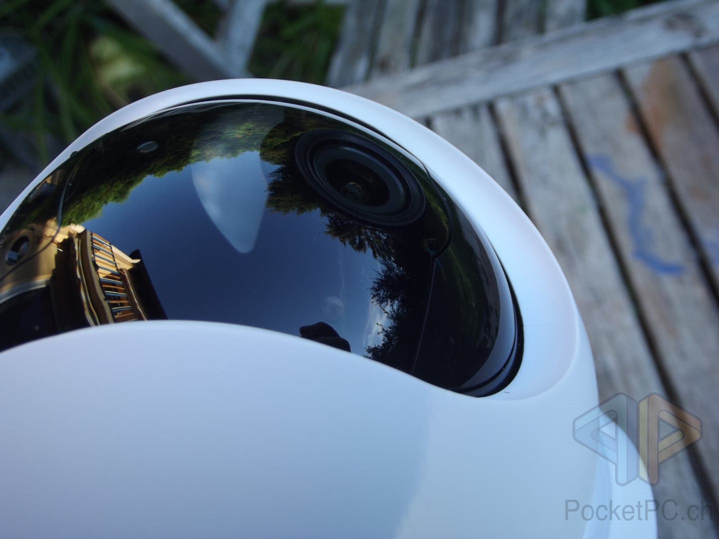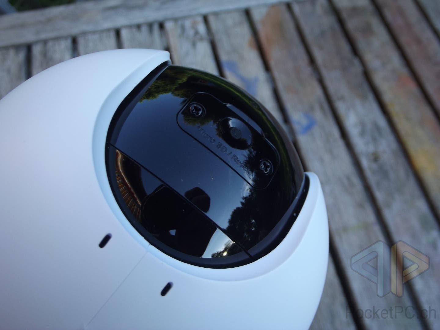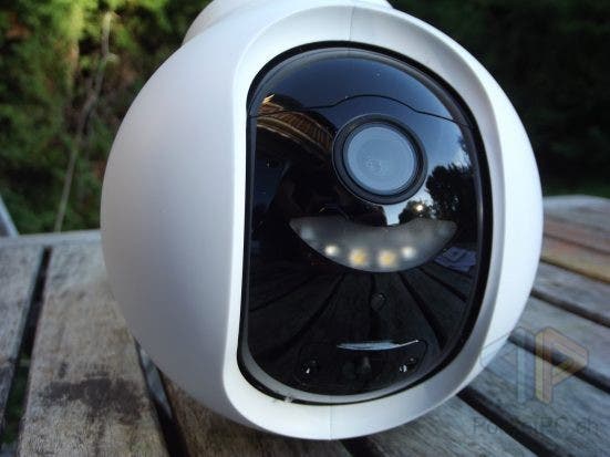 Zudem kann sich die kabellose IP-Kamera um 340 Grad horizontal drehen und 65 Grad vertikal neigen. Im Objektivteil ist ebenfalls unter einer abschraubbaren Abdeckung der microSD-Kartenslot, der lokalen Speicherplatz von bis zu 265 GB ermöglicht.