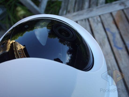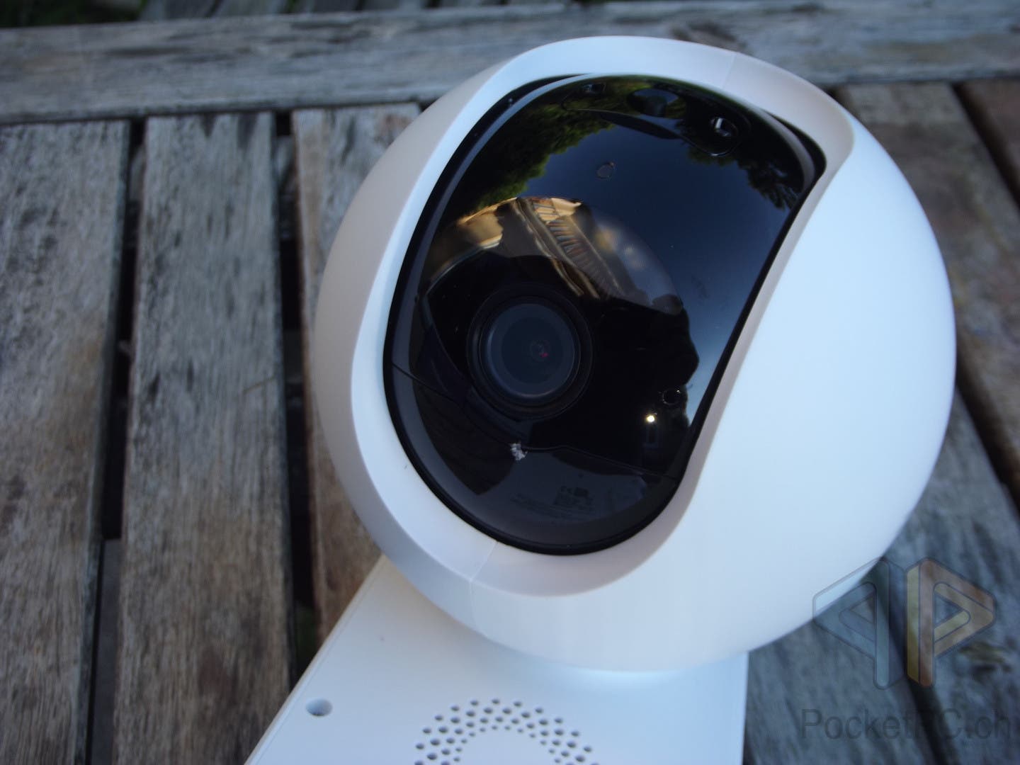 Die Kamera ist 183 x 116 x 166 mm gross und wiegt 803 Gramm. Sie besteht aus einer weissen, drehbaren Kugel von 116 mm durchmesser an einem weissen Arm und mit einem schwarzen Objektivbereich. Dieser kann geneigt werden und beinhaltet die 4 mm Linse mit einer Brennweite von f/1.6 und einem Blickfeld von 100 Grad diagonal, wobei 83 Grad horizontal und 44 Grad vertikal sowie 3D SNR dazu kommen.